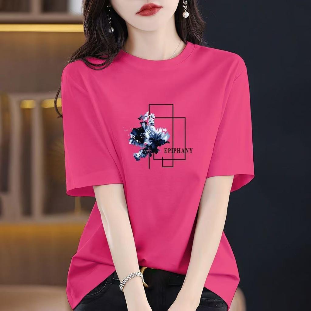 Футболка из хлопка с короткими рукавами для женщин 2024 года, новые модные свободные топы средней длины
