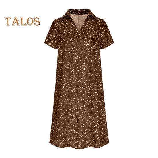 Летнее платье с принтом в горошек, короткие рукава, свободное платье-рубашка А-силуэта с V-образным вырезом, длиной до колена, миди-платье для свиданий, путешествий, отпуска