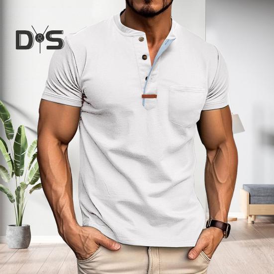 Универсальный мужской топ: Украсьте свой гардероб этим универсальным мужским топом из высококачественного полиэфирного волокна и смеси спандекса.. Однотонный дизайн, круглый вырез и вырез на трех пуговицах создают вневременной и модный образ, подходящий для различных случаев.