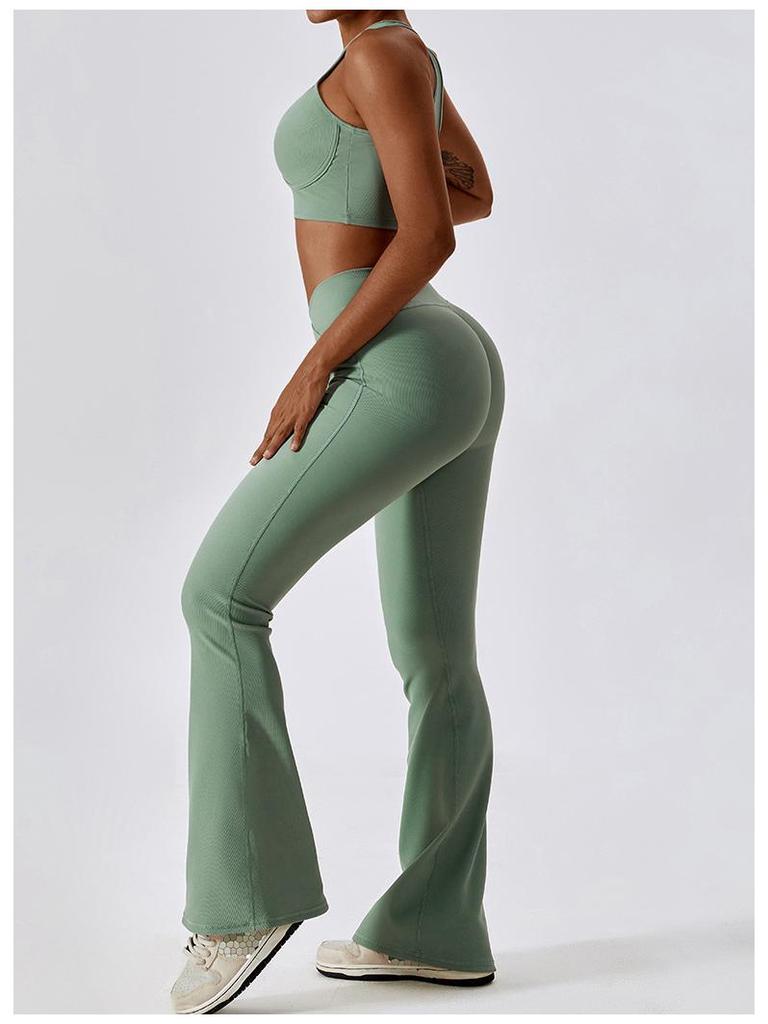 Поднимите свои тренировки и танцевальные программы на новый уровень с этими стильными и универсальными расклешенными брюками для йоги с высокой талией, разработанными специально для женщин.. Изготовленные из прочного нейлонового материала, эти брюки обеспечивают удобную посадку и отличную гибкость.. Ткань с мелкими канавками обеспечивает воздухопроницаемость и элегантный вид, что делает их идеальными как для повседневной носки, так и для интенсивных занятий фитнесом.. Широкий крой добавляет модный штрих и обеспечивает свободу движений, что делает эти брюки идеальным выбором для занятий йогой, танцами или любого активного образа жизни.