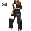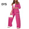Женский костюм из 2 предметов: пальто, брюки, отложной воротник, длинные рукава, эластичный подол, куртка, широкие брюки с высокой талией, офисный наряд для поездок на работу
