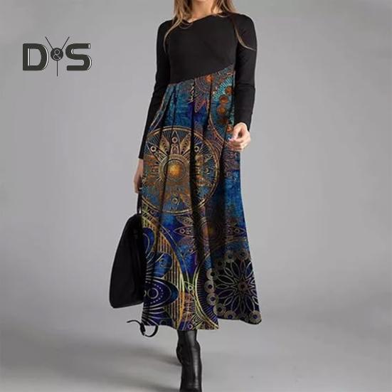 Богемная элегантность: Ощутите стиль бохо-шик с этим длинным платьем с цветочным принтом и длинными рукавами.. Плавный силуэт излучает элегантность и изящество, что делает его идеальным выбором для различных случаев.