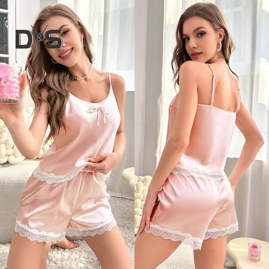 2 шт./комплект женский жилет шорты костюм V-образный вырез без рукавов кружевной топ сзади высокая талия короткие брюки домашняя одежда одежда для отдыха летняя одежда для сна — купить товар онлайн с бесплатной доставкой по всему миру!