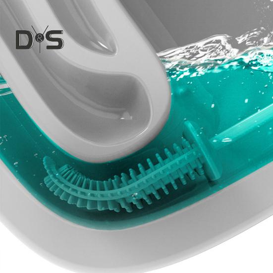 Гибкая силиконовая головка щетки: Сгибаемая силиконовая головка адаптируется к углам унитазного кольца, проникая под края, обеспечивая тщательную очистку, не царапая поверхности.