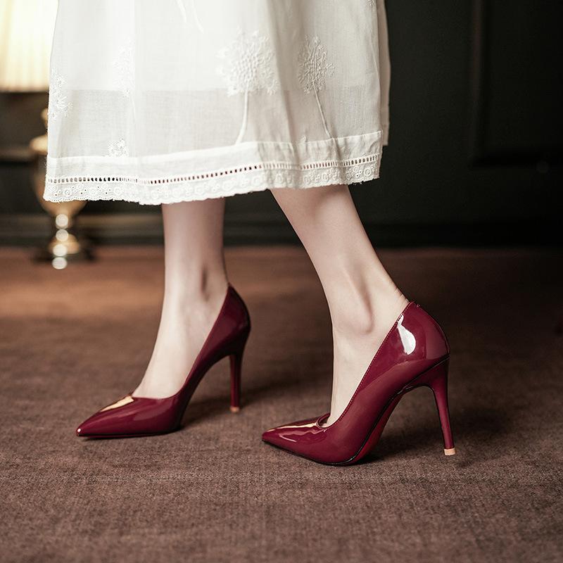 Туфли с острым носком и красной подошвой, шпильки, высококачественные женские свадебные туфли, темперамент, сексуальные туфли, высокие каблуки, одинарные туфли