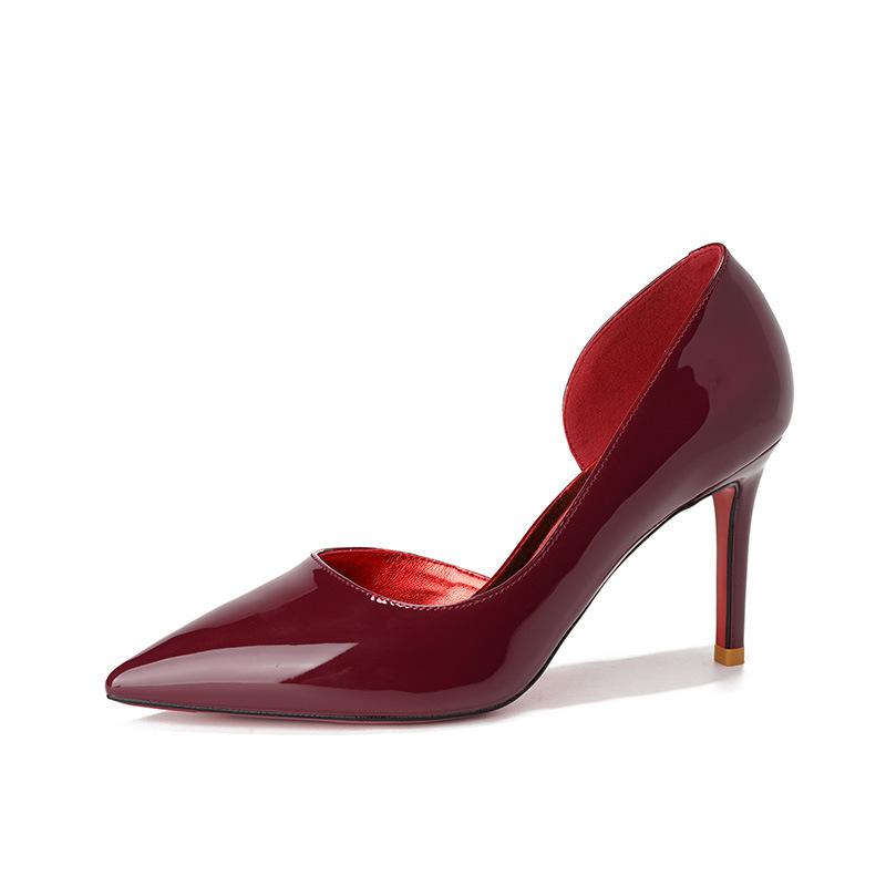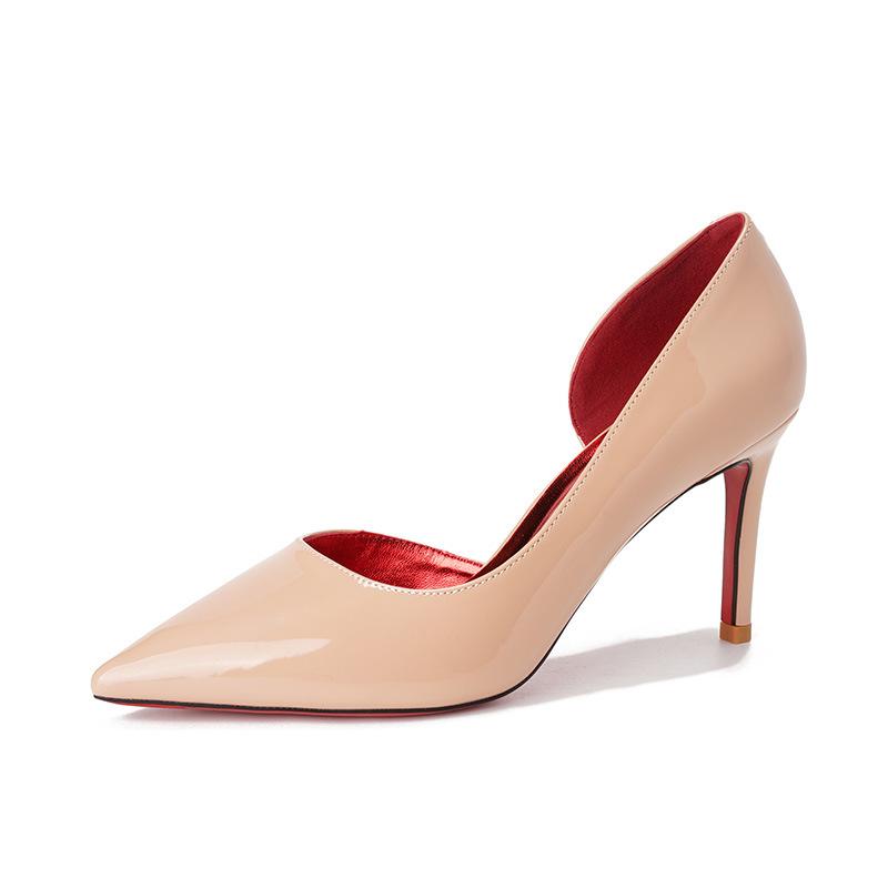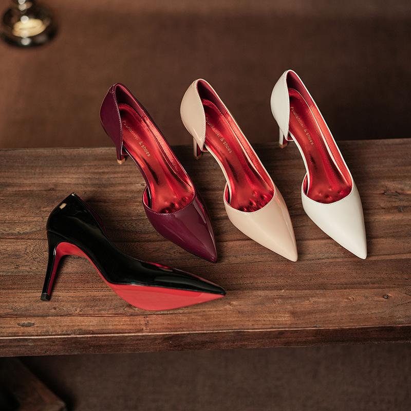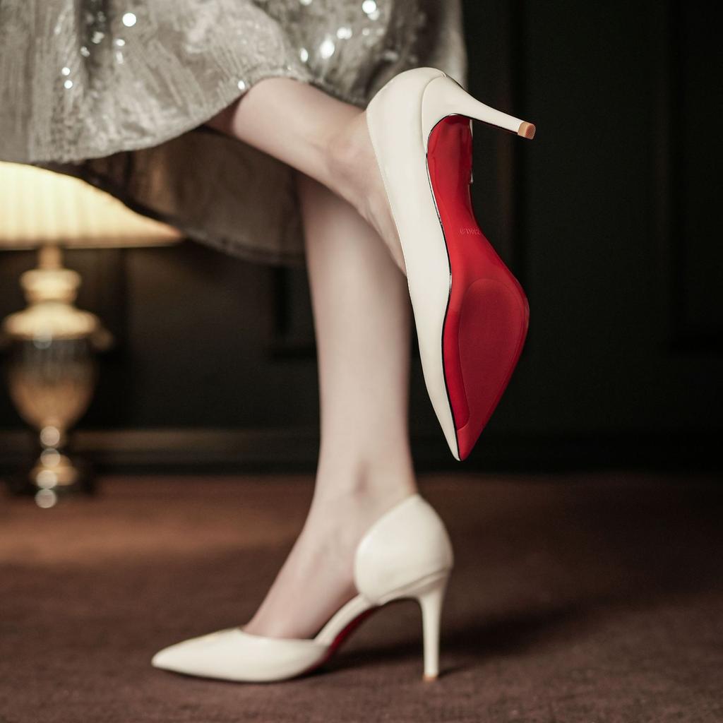 Остроконечные боковые пустые красные подошвы женские тонкие каблуки свадебные туфли высокого класса темперамент сексуальные универсальные туфли на высоком каблуке одинарные туфли