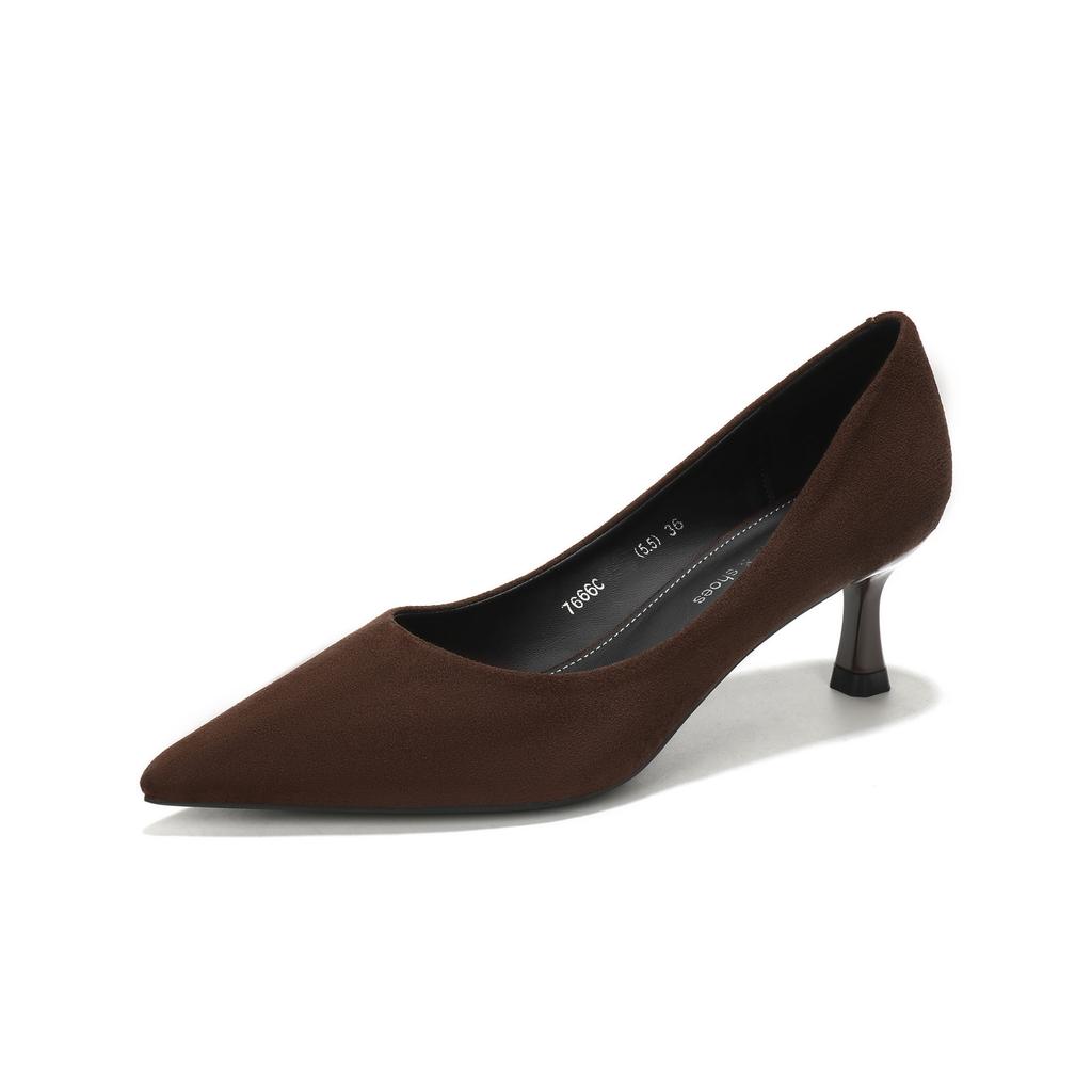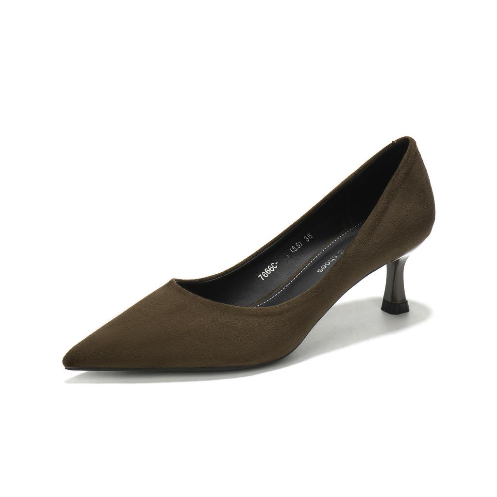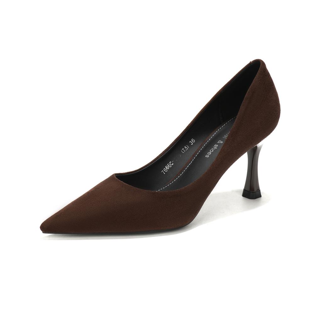 Замшевая заостренная голова тонкий каблук простой темперамент женская обувь удобная и не устают ноги мода высокие каблуки