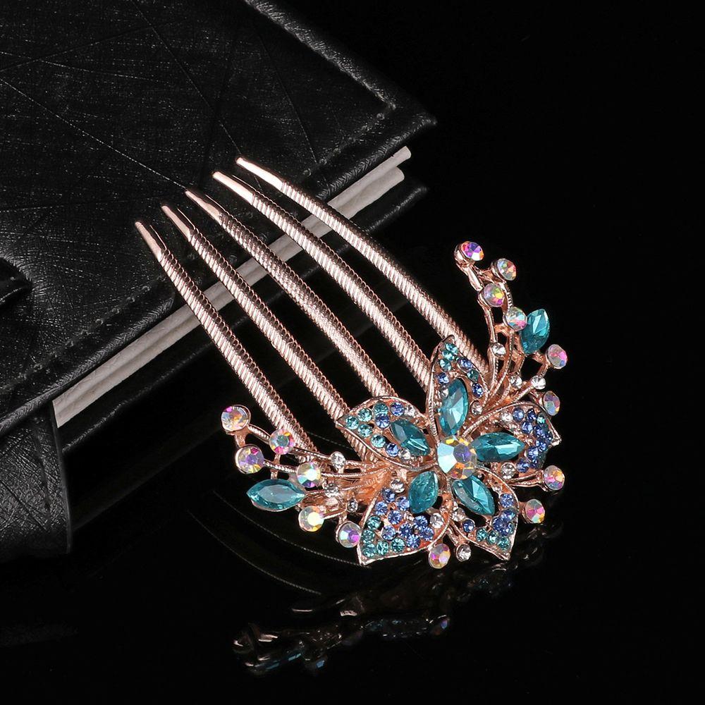 Fashion Elegant Hair Accessories Inlaid Flower Shiny Rhinestone Hairpin Hair Comb — купить товар онлайн с бесплатной доставкой до всему миру!