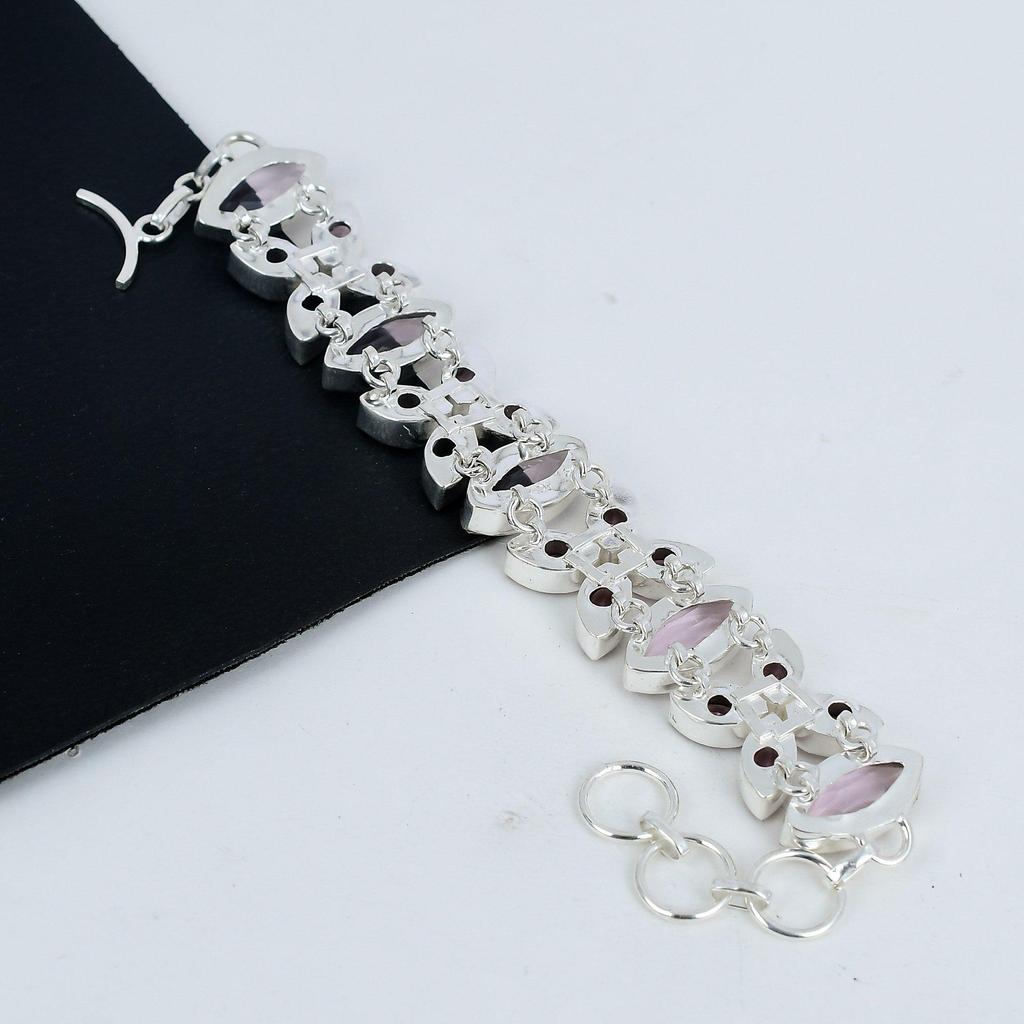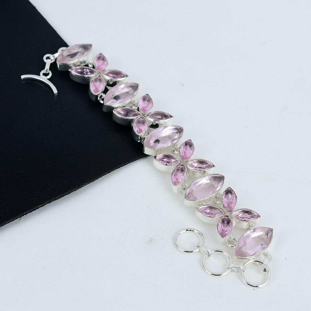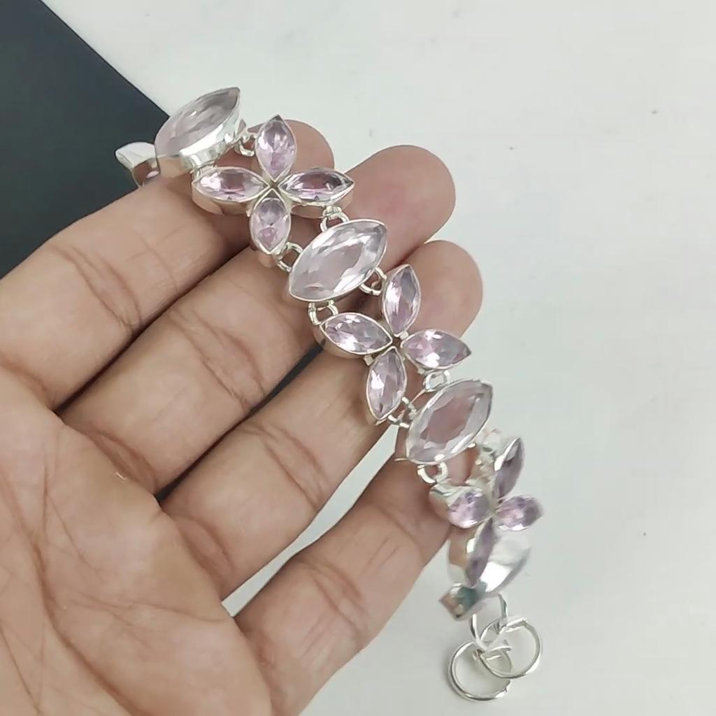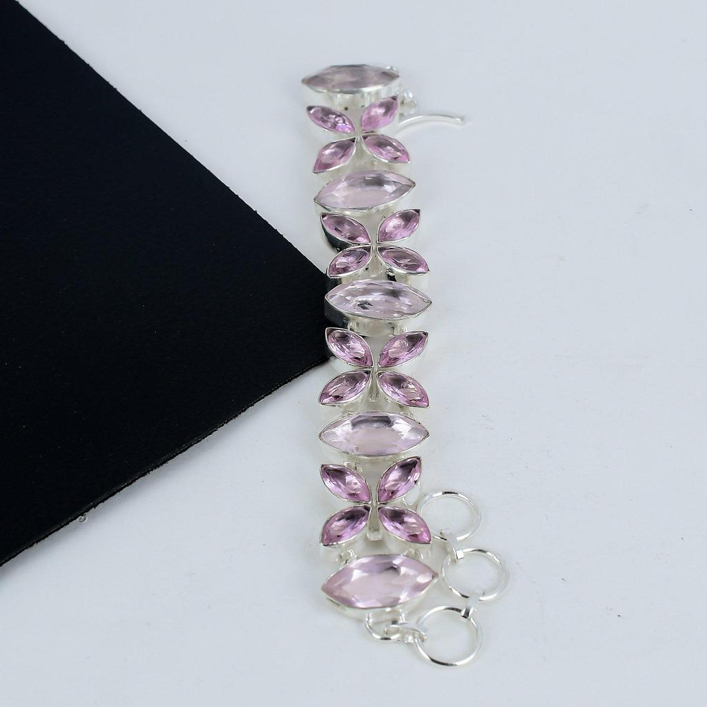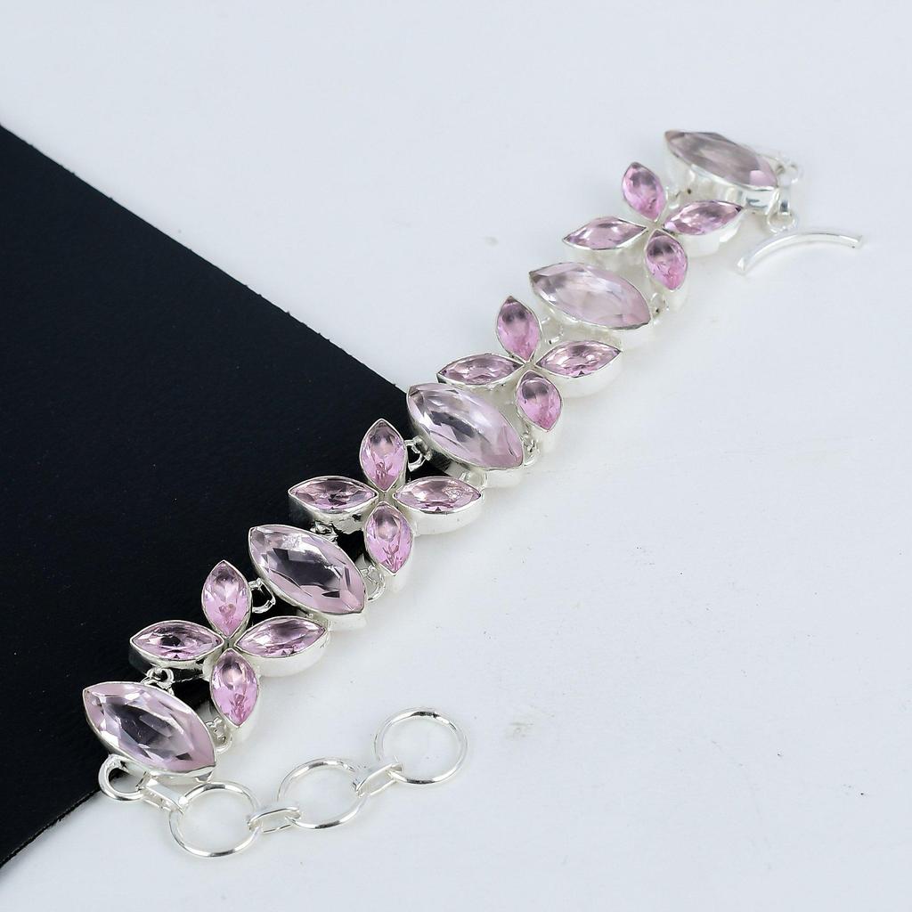 Изящный розовый кунцитовый драгоценный камень браслет ручной работы из серебра 925 пробы, розовый кунцитовый браслет для жены, браслет унисекс, подарок на вату