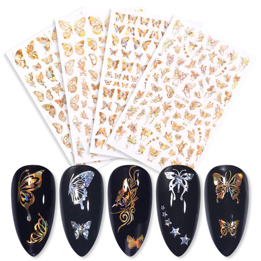 New Nail Decals Nail Art DIY Nail Stickers 3D Butterfly Holographic Adhesive