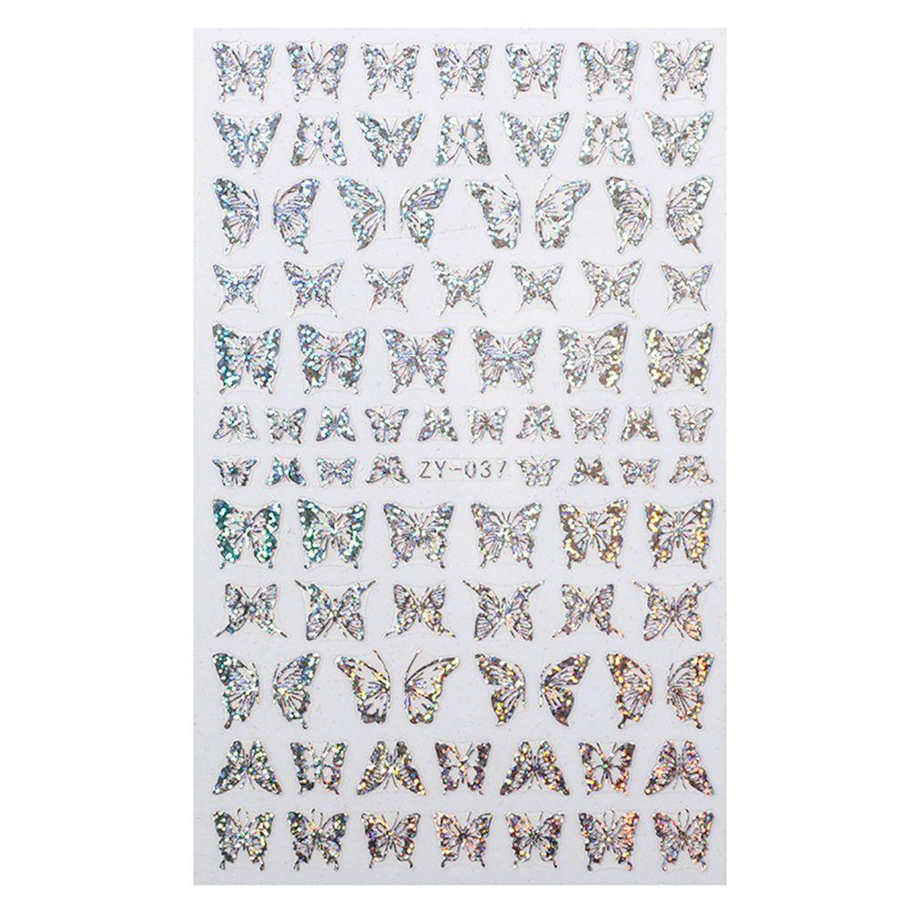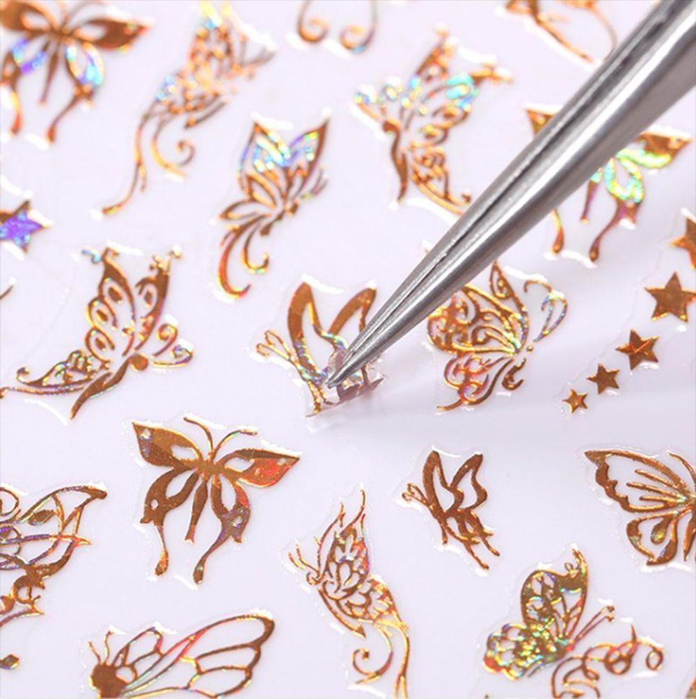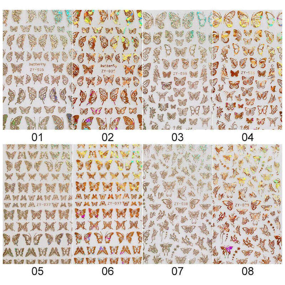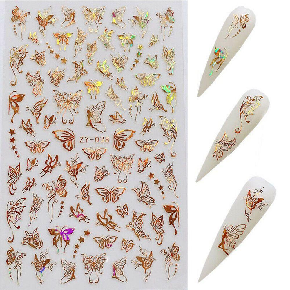 New Gold Silver DIY Nail Decals Holographic Adhesive Nail Stickers 3D Butterfly