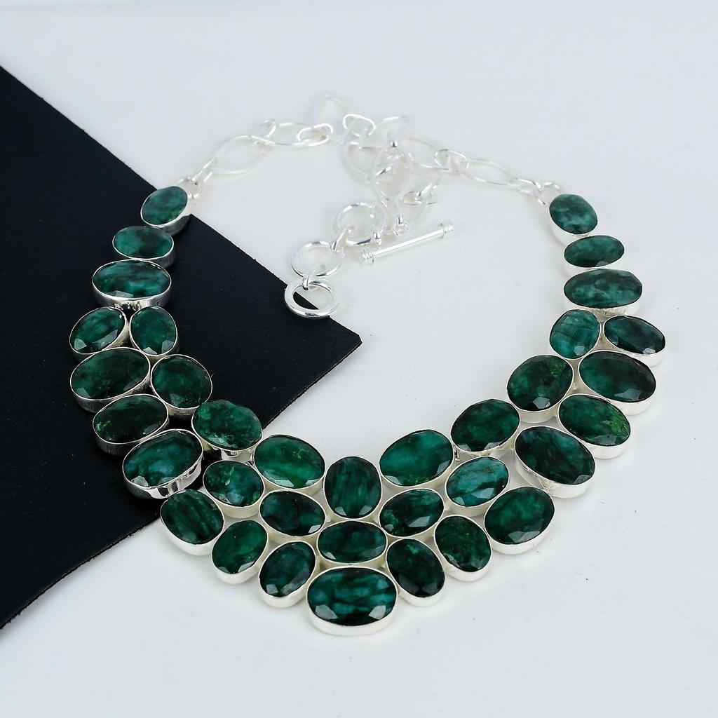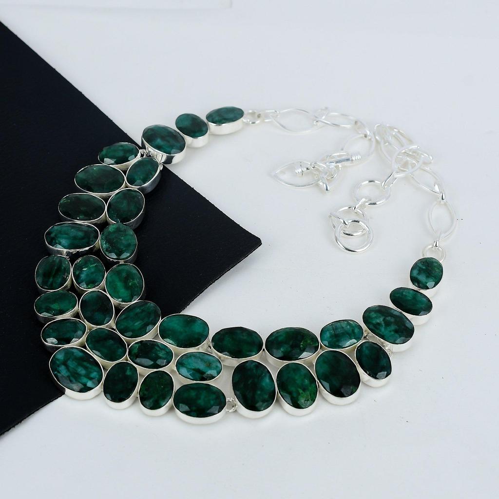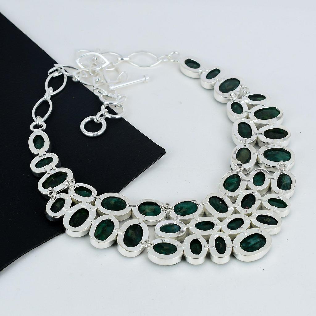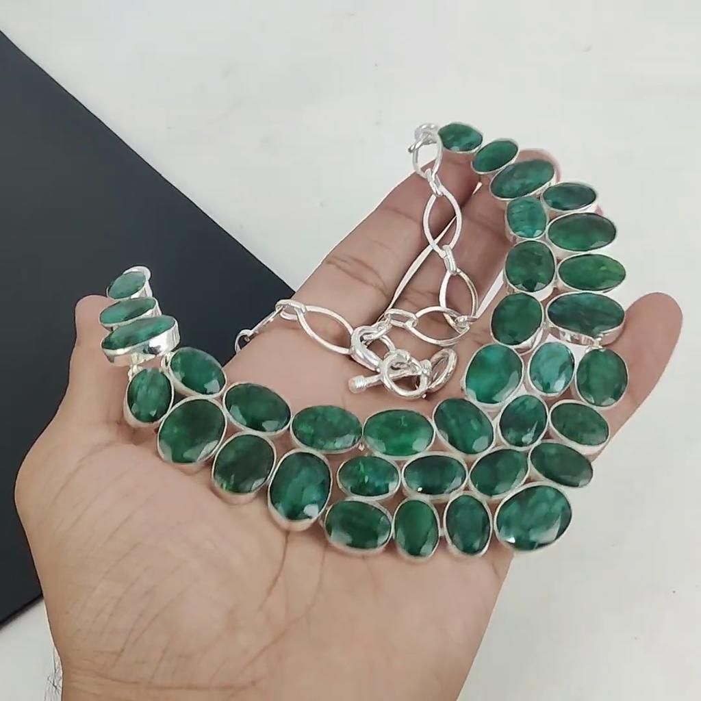 Красивое ожерелье изумрудного камня ручной работы из стерлингового серебра 925 пробы, ожерелье изумрудного серебра для жены, ожерелье унисекс, подарок на День благодарения