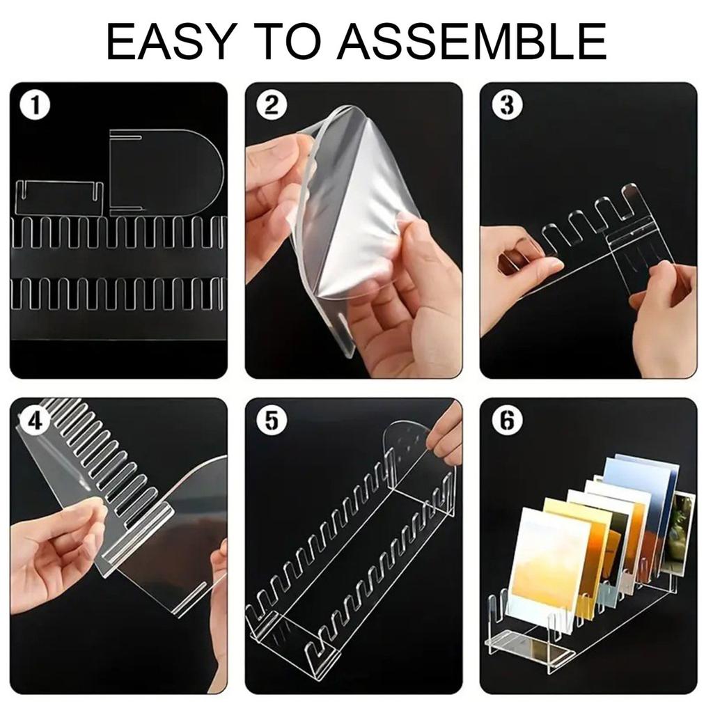 Простая сборка: Легко соберите эту подставку для карточек, соединив этикетки каждой акриловой полоски, благодаря ее удобной конструкции.. Просто снимите защитную пленку и наслаждайтесь быстрой установкой и мгновенным использованием.