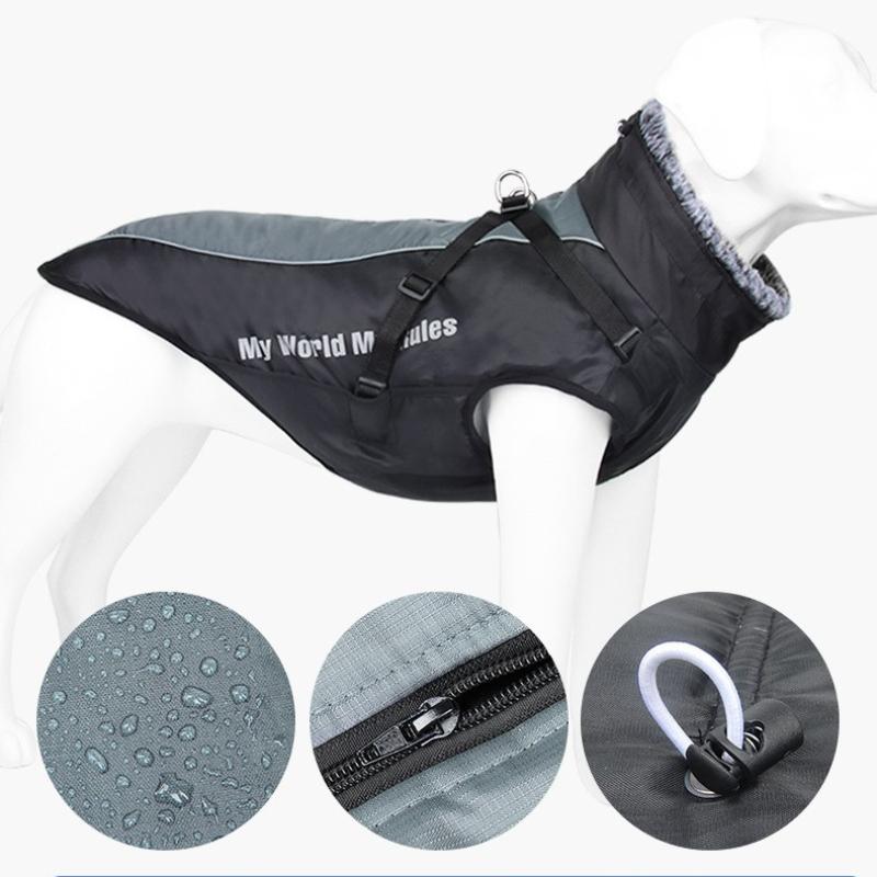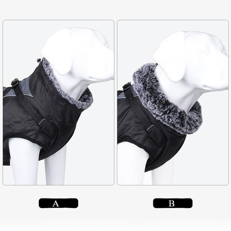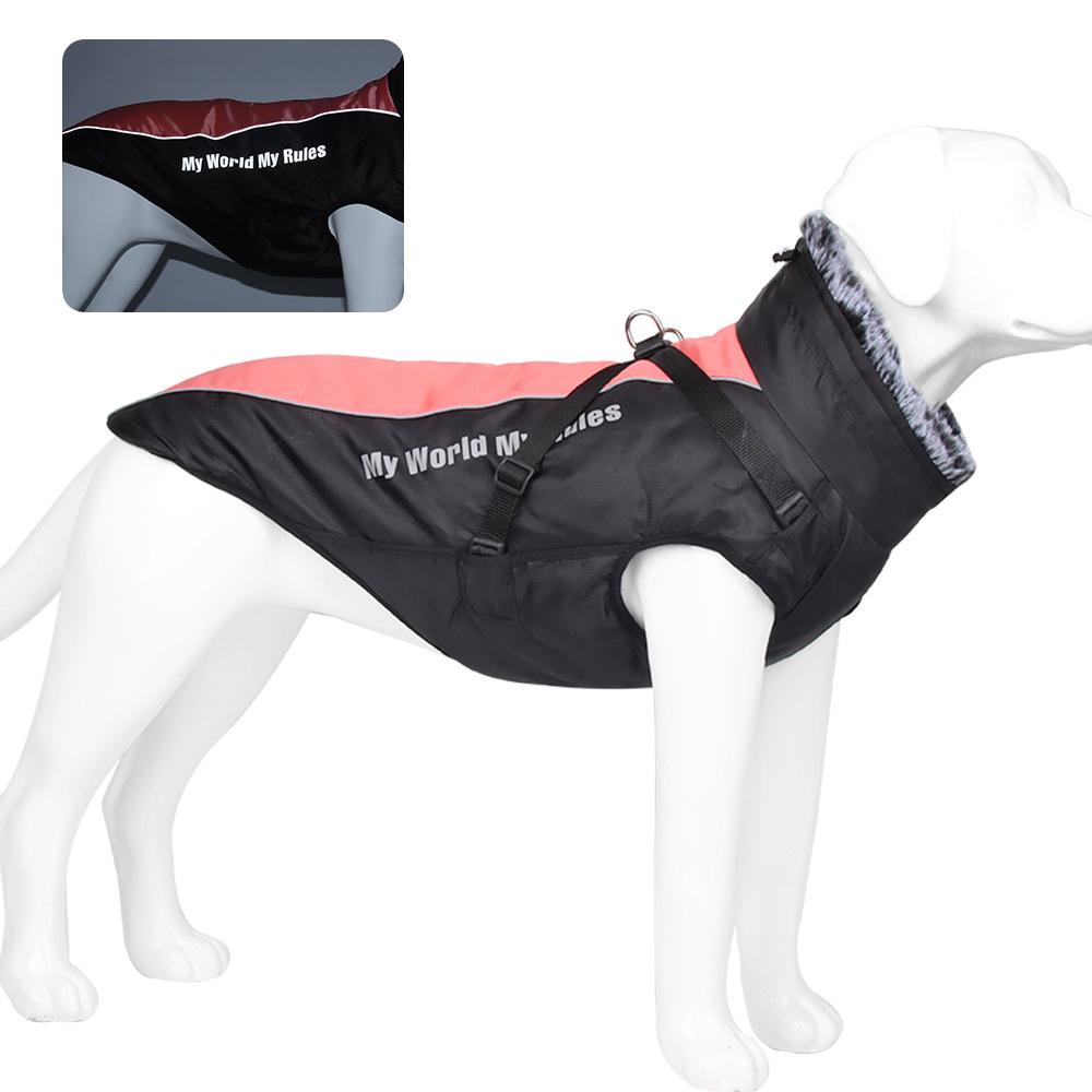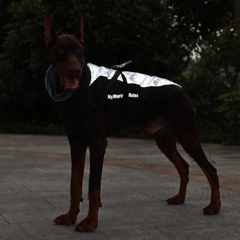 Новая Большая Одежда для Питомцев Ночное Отражение Толстое Теплое Хлопковое Пальто для Собак с Меховым Воротником Ткань Оксфорд Застежка-Клипса из ПП Хлопка Плащ от Непогоды для Питомцев Большая Одежда для Питомцев