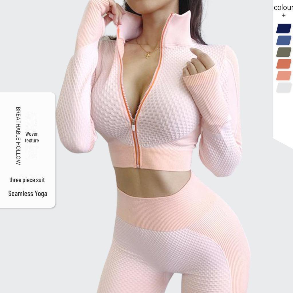 Женский бесшовный трикотажный костюм для йоги: Комплект из 3 предметов осень/зима с подъемом бедра для фитнеса и бега — купить товар онлайн с бесплатной доставкой по всему миру!