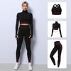 Женский бесшовный трикотажный костюм для йоги: Комплект из 3 предметов осень/зима с подъемом бедра для фитнеса и бега