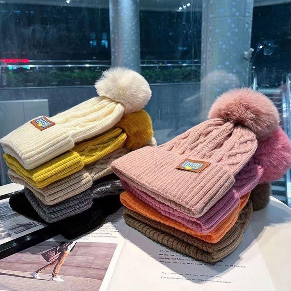 Keep Warm Knitted Cap Thickened Pompoms Hat Fashion Winter Hat Women