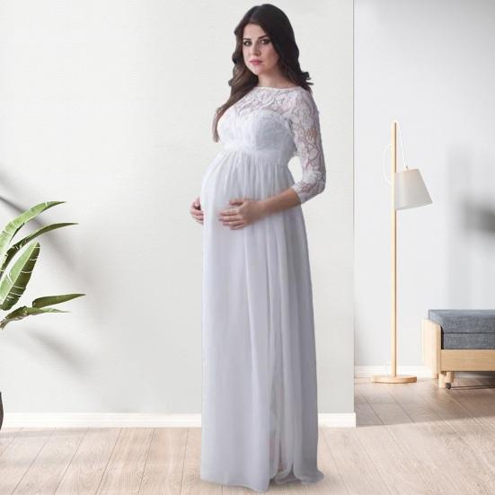 Это элегантное платье для беременных имеет свободный крой низа для максимального комфорта и романтичную, привлекательную длинную юбку.. Классический топ с круглым вырезом и кружевом добавит элемент элегантности и сексуальности, демонстрируя красивую линию шеи и плеч.. Элегантный фасон с длинными рукавами излучает благородство и идеально подходит для модных беременных женщин..