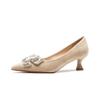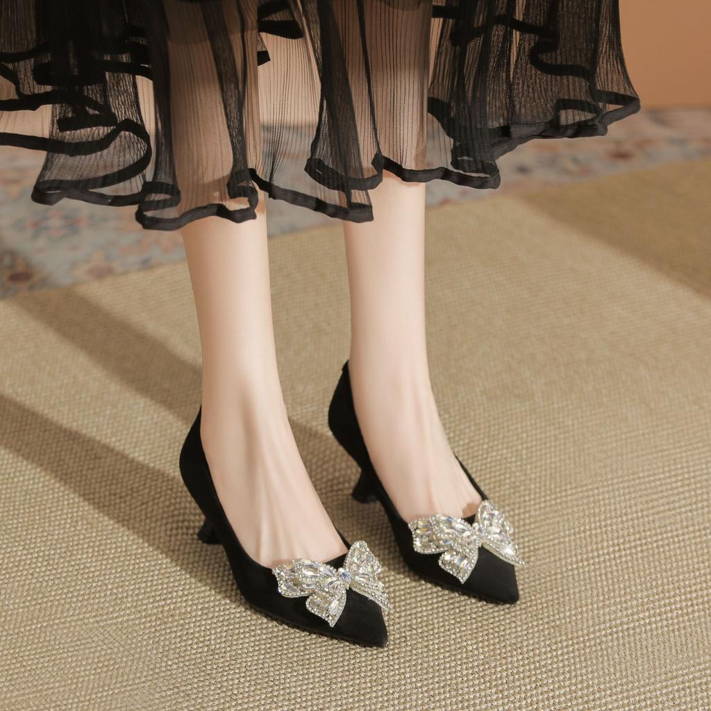 Замшевый бант со стразами на тонком каблуке с неглубоким носком женские туфли с острым носком женские туфли для банкета