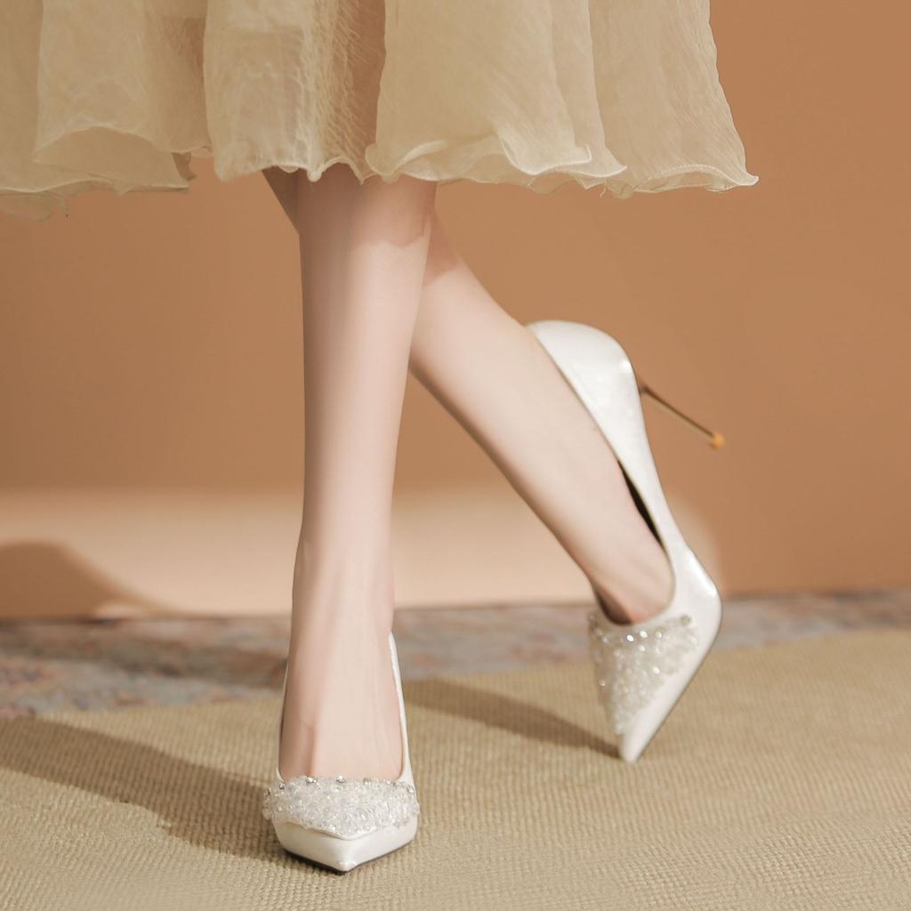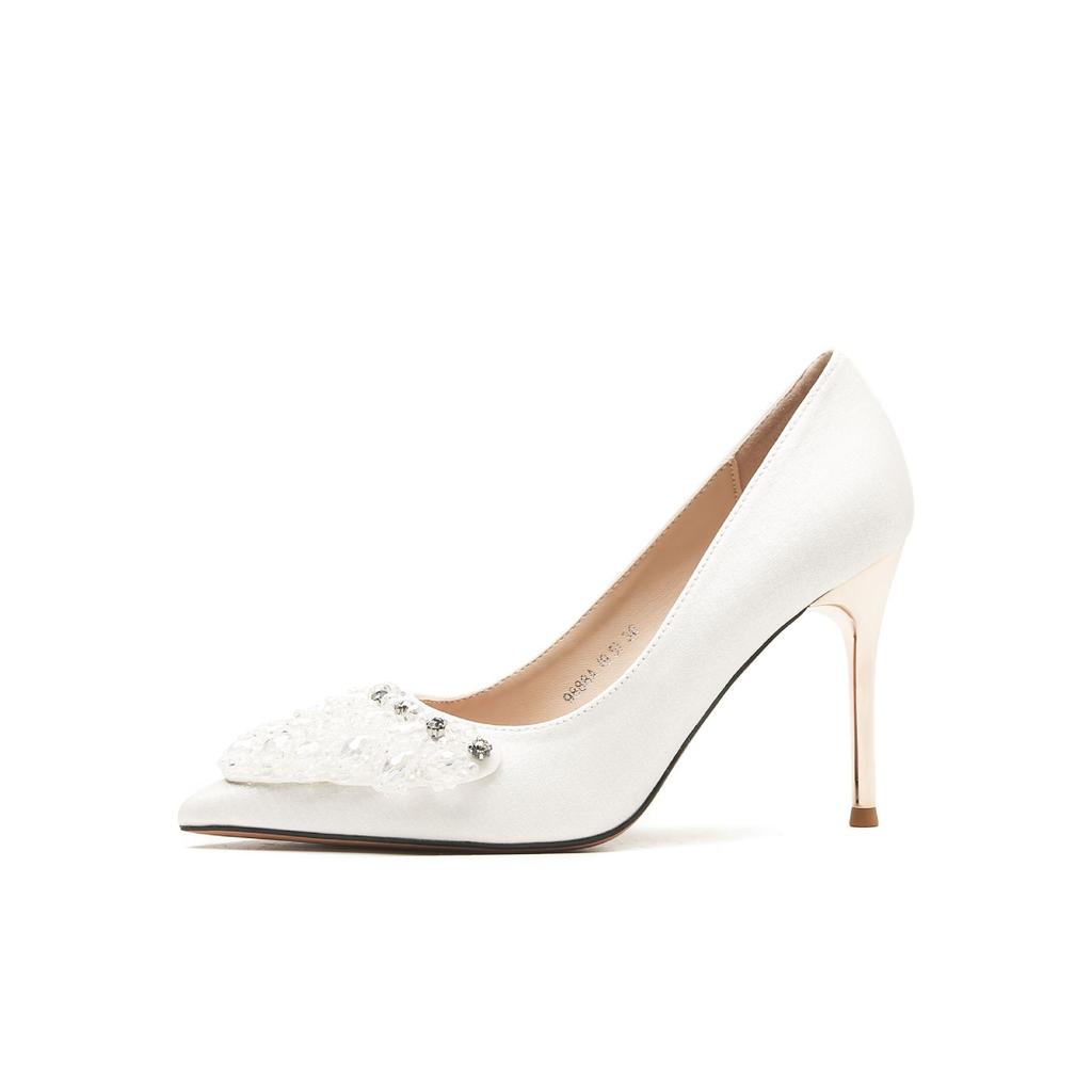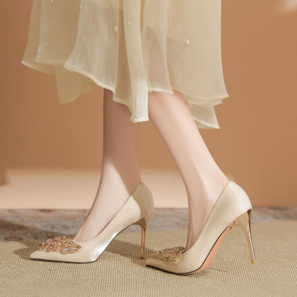 Туфли на высоком каблуке женские атласные тонкие каблуки неглубокие заостренные стразы женские туфли одинарные туфли повседневные универсальные