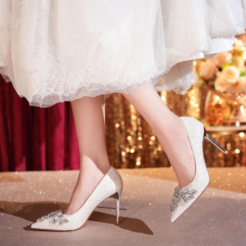 Туфли на высоком каблуке из микрофибры, женские туфли на тонком каблуке, с неглубоким горлом, со стразами, одинарные туфли, женские свадебные туфли, туфли для подружек невесты