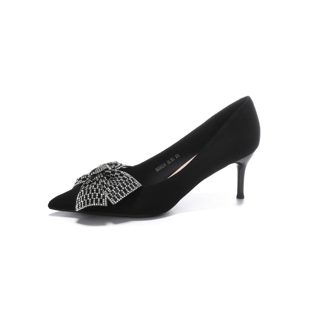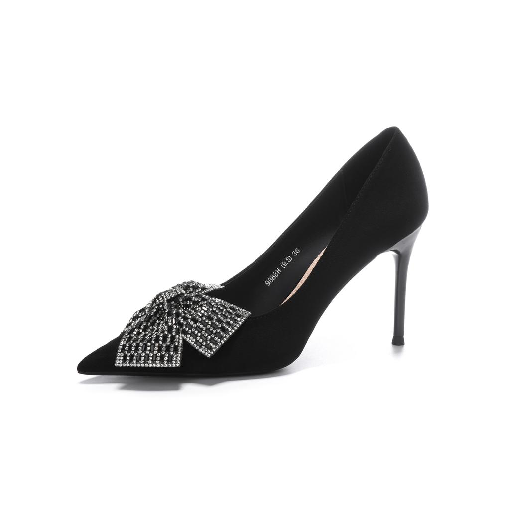 Черные замшевые туфли на шпильке со стразами и бантом, элегантные, простые и удобные женские туфли