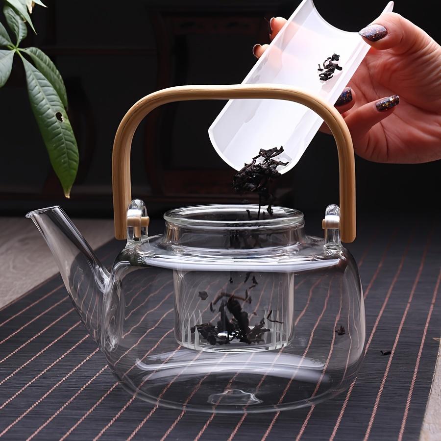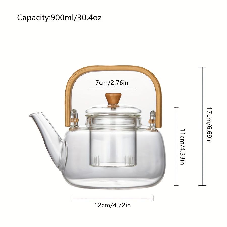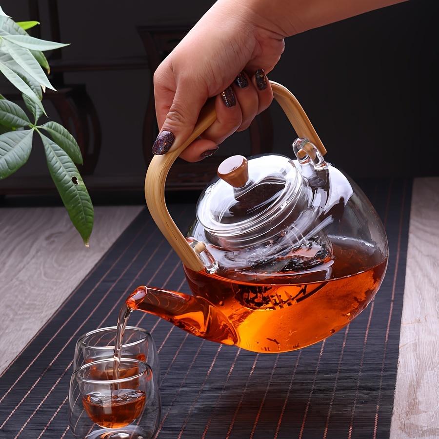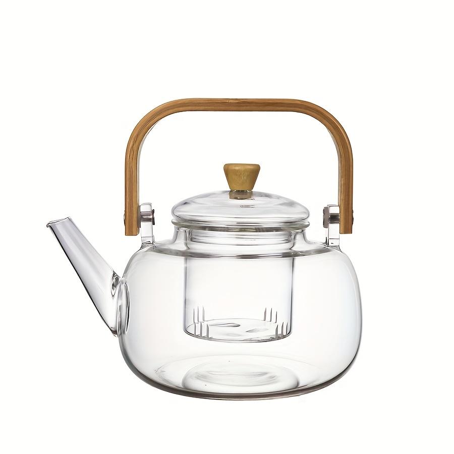 Элегантный стеклянный чайник с бамбуковой ручкой - термостойкий, из боросиликатного стекла, прозрачный, с деревянной ручкой, идеально подходит для дома, офиса или в качестве подарка на праздник