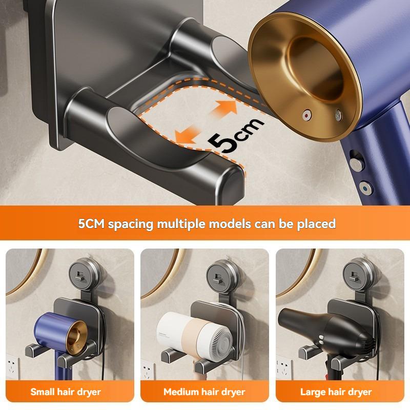 Держатель для фена на присоске - космический алюминий, настенный, без сверления, подходит для ванной комнаты, спальни и гостиной, аксессуары для ванной комнаты