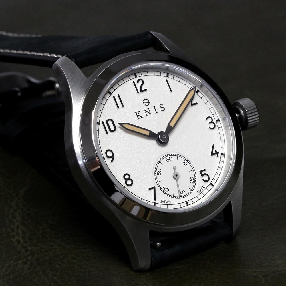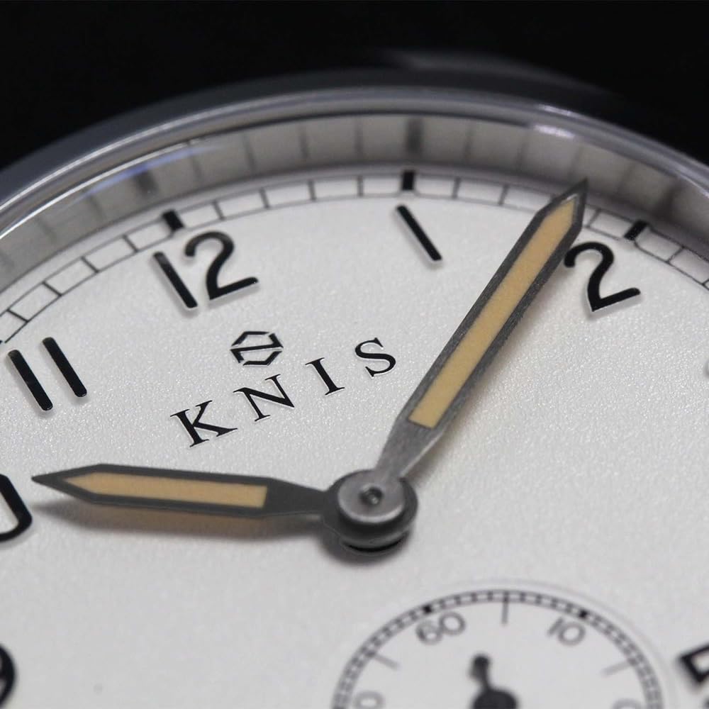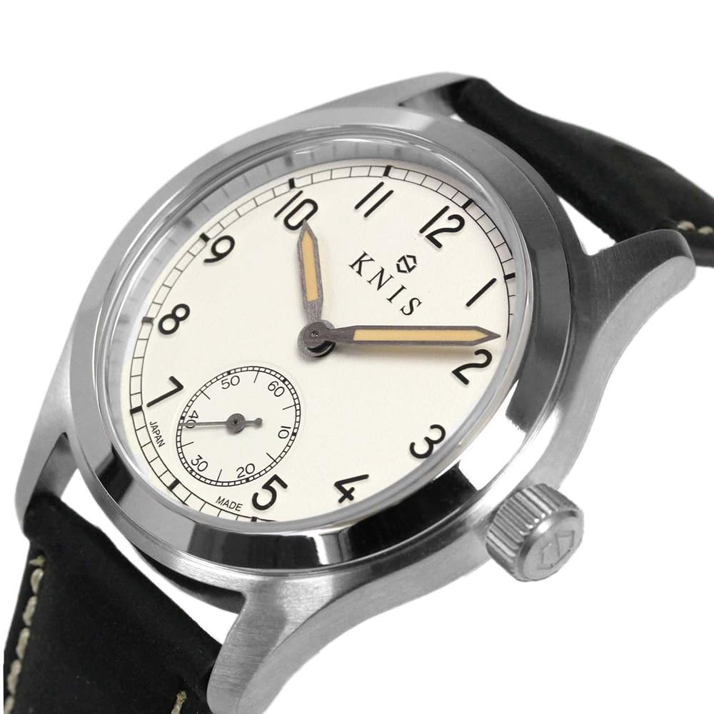Часы KNIS Varnish Made in Japan с ретро-ремешком, сапфировым стеклом, водонепроницаемостью 10 АТМ, кремово-белым циферблатом, черной кожей, мужские KN003-WHBKLE