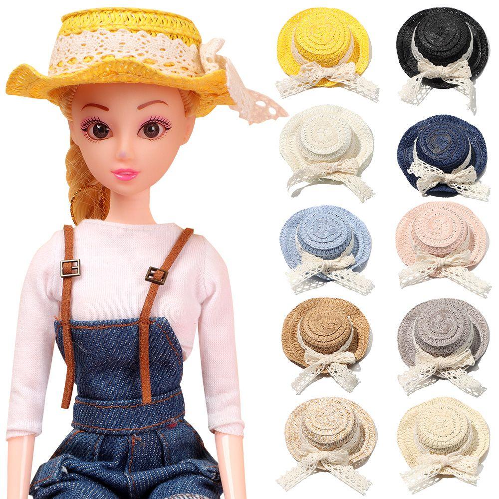 Миниатюрный мини-кружевной бант, украшение для кукольного дома, плетеные вручную шляпы, аксессуары для кукольной шляпы, соломенная шляпа