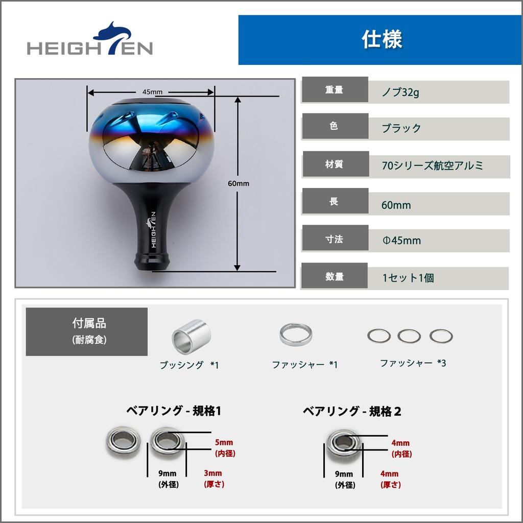 Ручка для катушки HEIGHTEN 45 мм, 4 цвета, тип Shimano B, размер Daiwa L, универсальная серия Aurora (черный) (726)