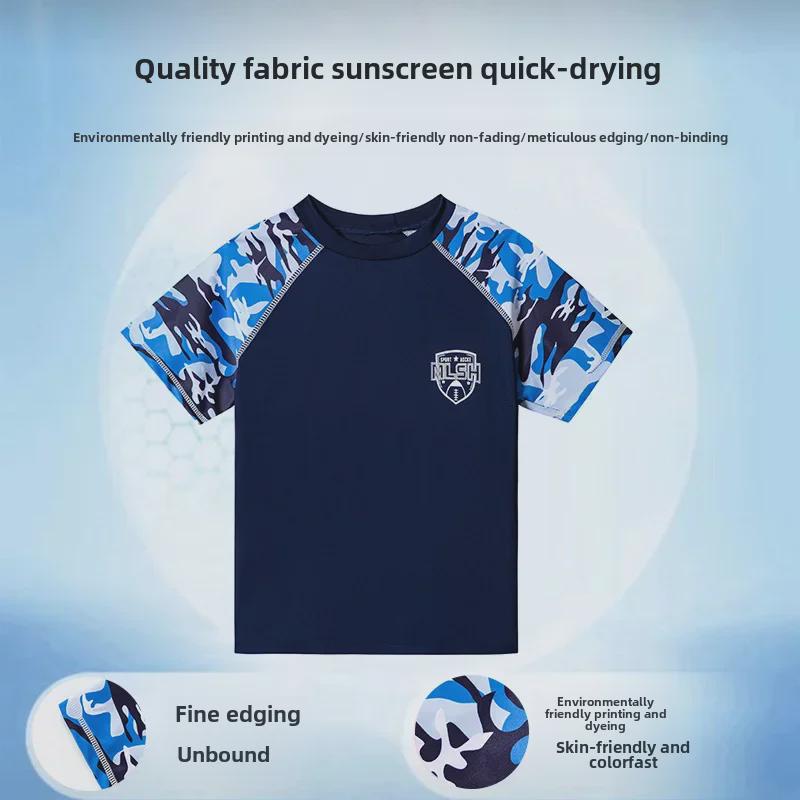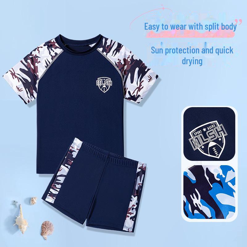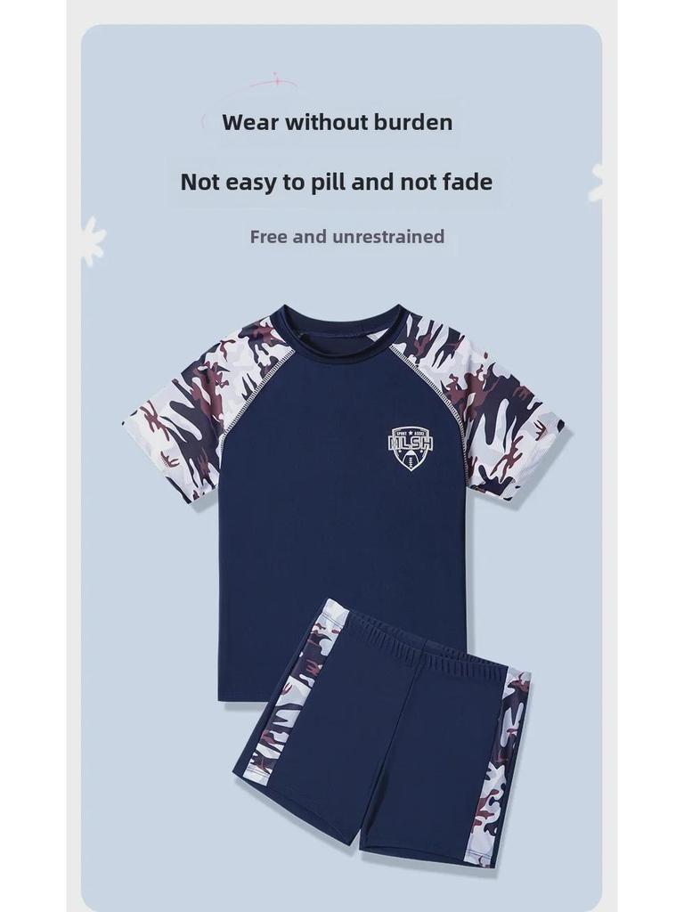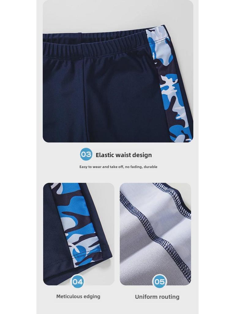 Эти плавки для мальчиков имеют модный камуфляжный рисунок и стильный дизайн с разрезами, идеально подходят как для тренировок, так и для неторопливого посещения горячих источников.. Изготовленные из высококачественного полиэстера, они обеспечивают долговечность и комфорт, быстро сохнут и легкие.