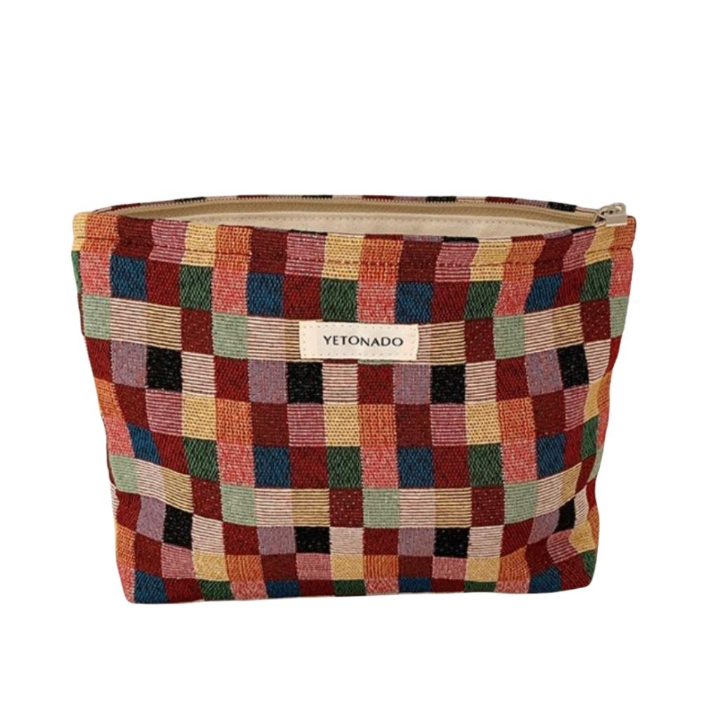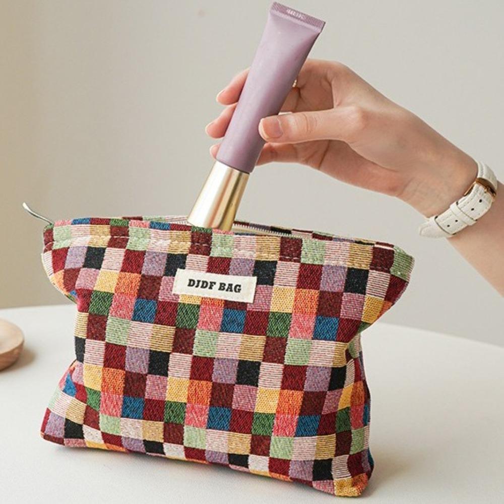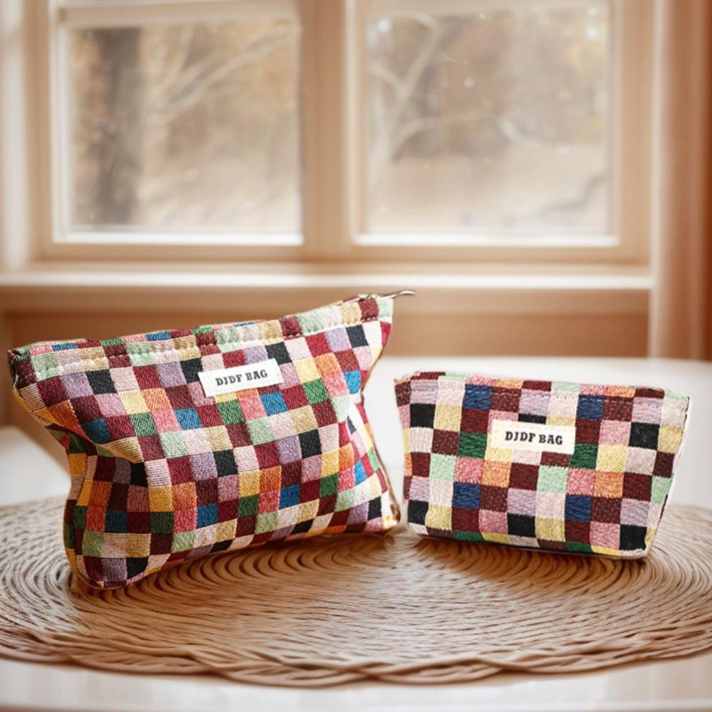 with Zipper Makeup Bag Color Plaid Key Case Portable Cosmetic Pouch for Women Girls