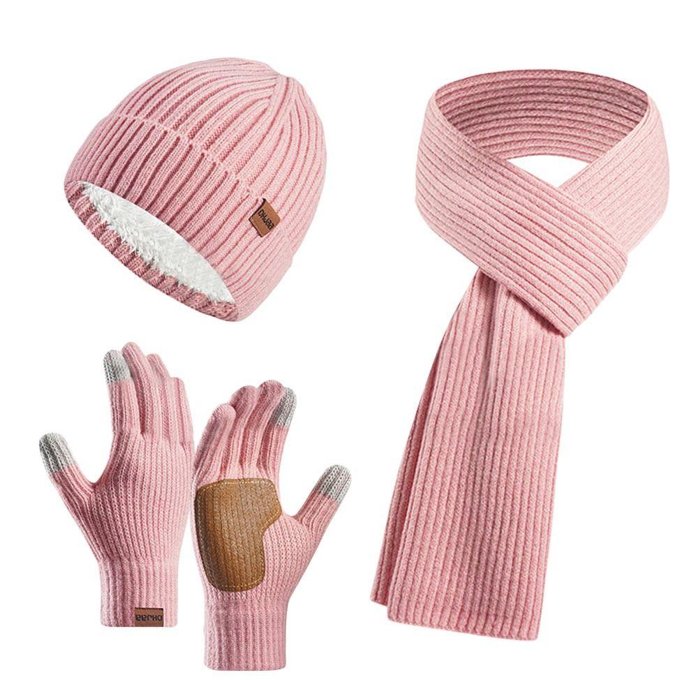 Набор из 3 предметов: Теплые женские шапки, шарф, перчатки. Нескользящие зимние теплые варежки для мужчин и женщин