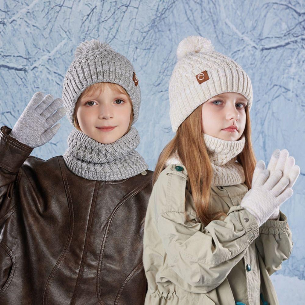 3 шт. Унисекс Детская шапка-бини с защитой ушей, шарф-шапка, модный детский зимний набор из шапки, шарфа и перчаток