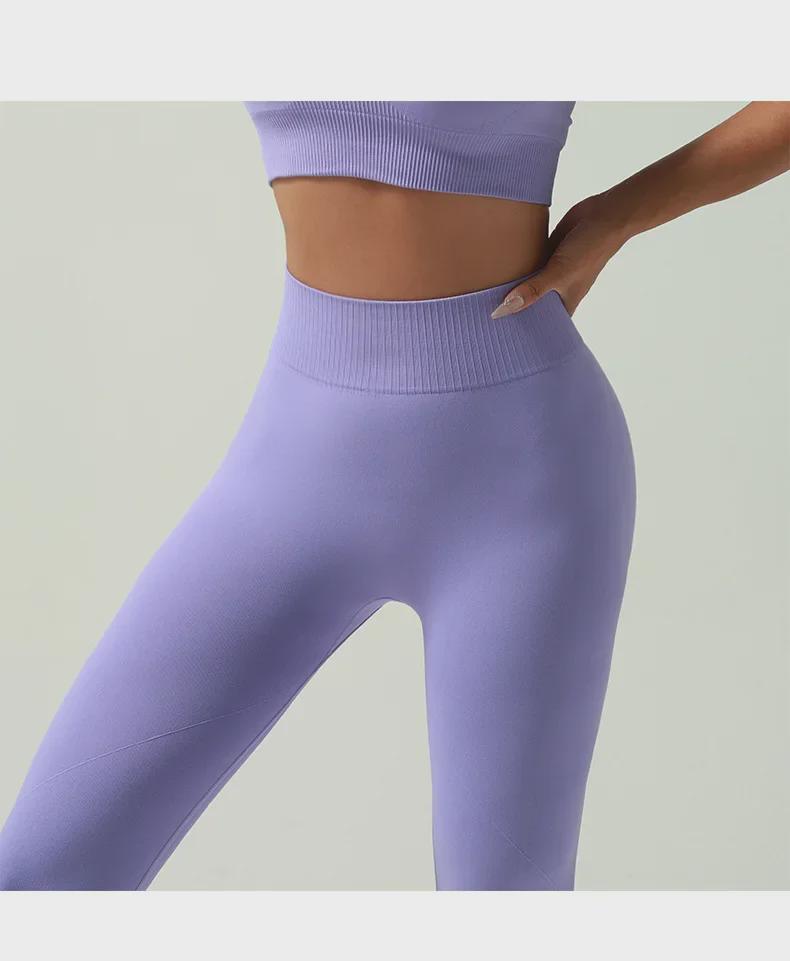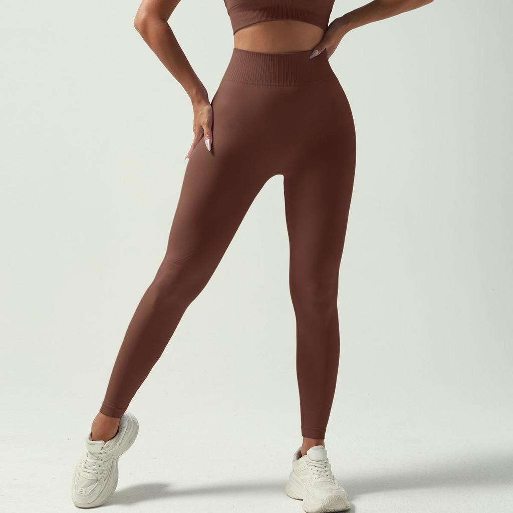 Бесшовные штаны для йоги с высокой талией - эластичные телесного цвета, без линий