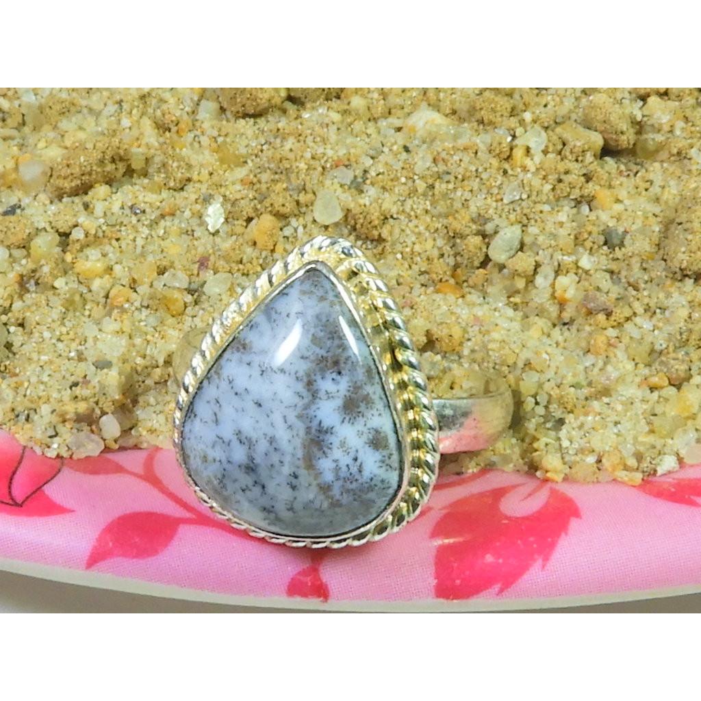 Natural Dendrite Opal 925 Sterling Silver Pear Handmade Ring Gift US-8.5 MK-50