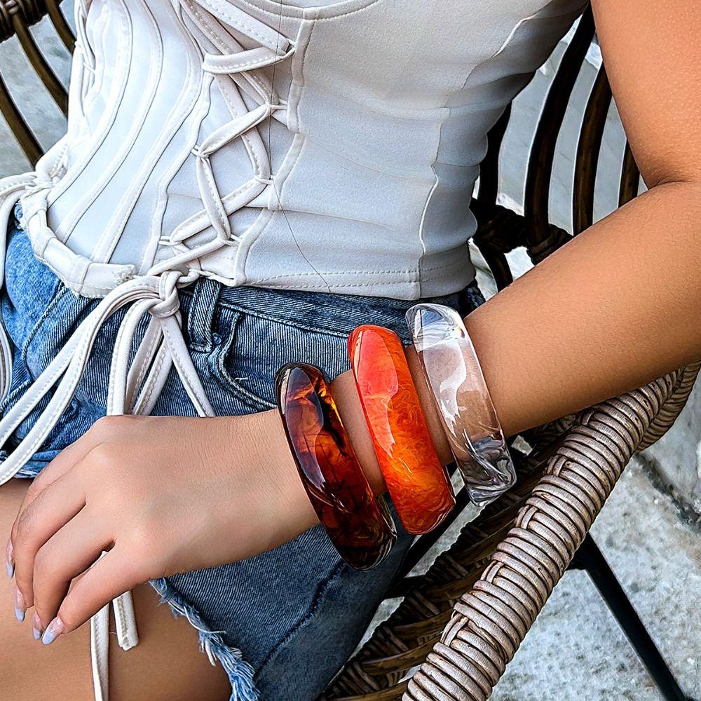 Браслет из акриловой смолы, коричневый геометрический браслет с подвесками в стиле INS, массивные браслеты для женщин и девочек