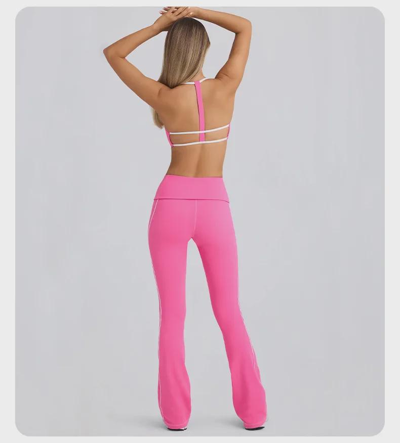 Этот стильный женский осенний комплект для йоги создан для комфорта и эффективности.. В комплект входят расклешенные брюки, спортивный бюстгальтер и топ-труба с подвязками, все выполнено из дышащей смеси 75% нейлона и 25% спандекса.. Такое сочетание тканей обеспечивает гибкую посадку, которая повторяет ваши движения, обеспечивая поддержку и легкость движений во время тренировок или повседневной носки.. Расклешенные брюки добавляют модный штрих, а спортивный бюстгальтер и топ-труба с подвязками предлагают универсальные варианты для многослойного образа.. Этот комплект идеально подойдет тем, кто ищет в своей спортивной одежде одновременно моду и функциональность.