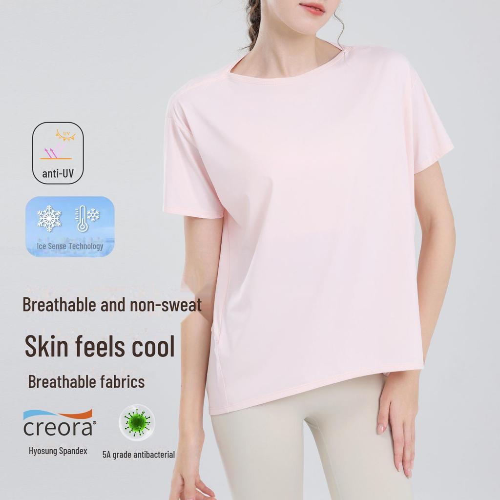 Женский свободный спортивный жилет телесного цвета длиной до бедер, утягивающая футболка для йоги, легкая летняя одежда для тренировок и фитнеса с коротким рукавом.