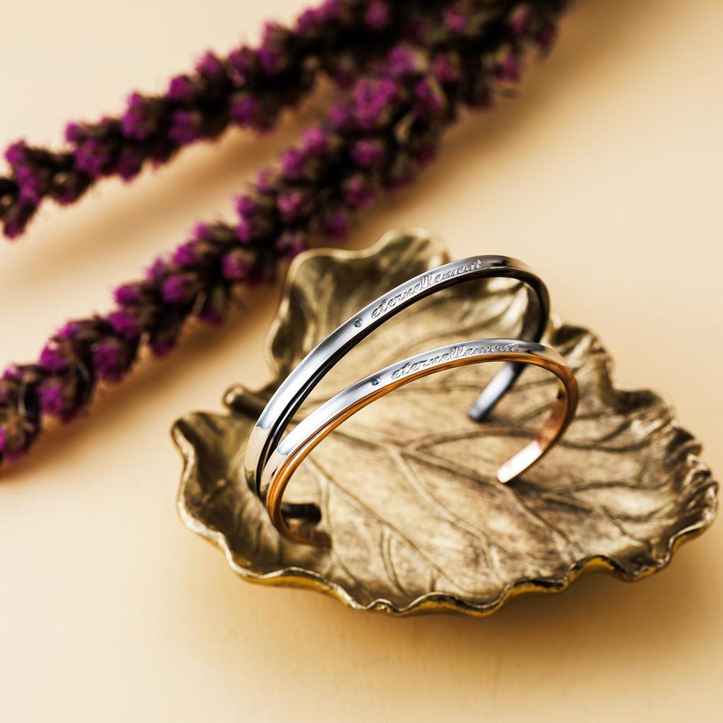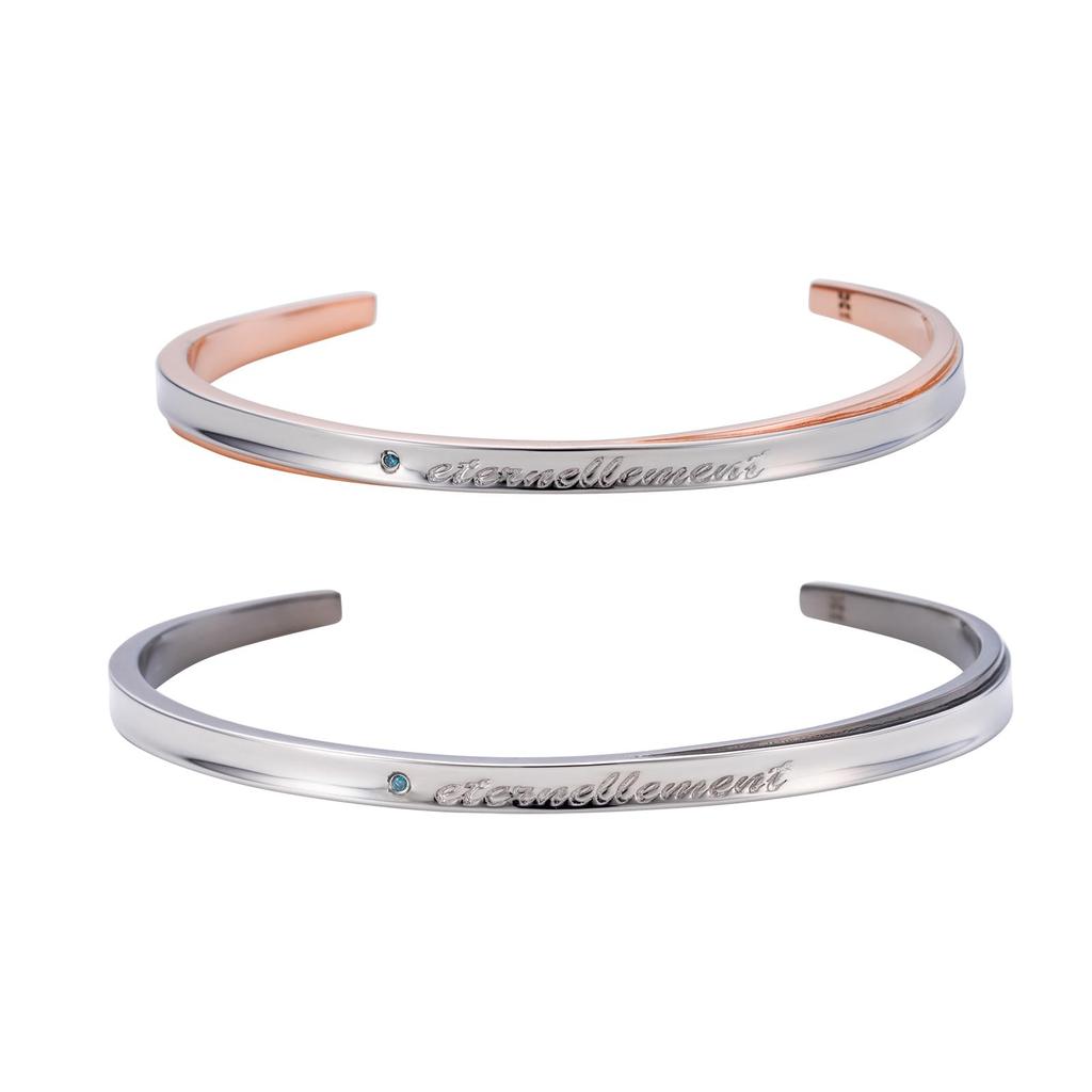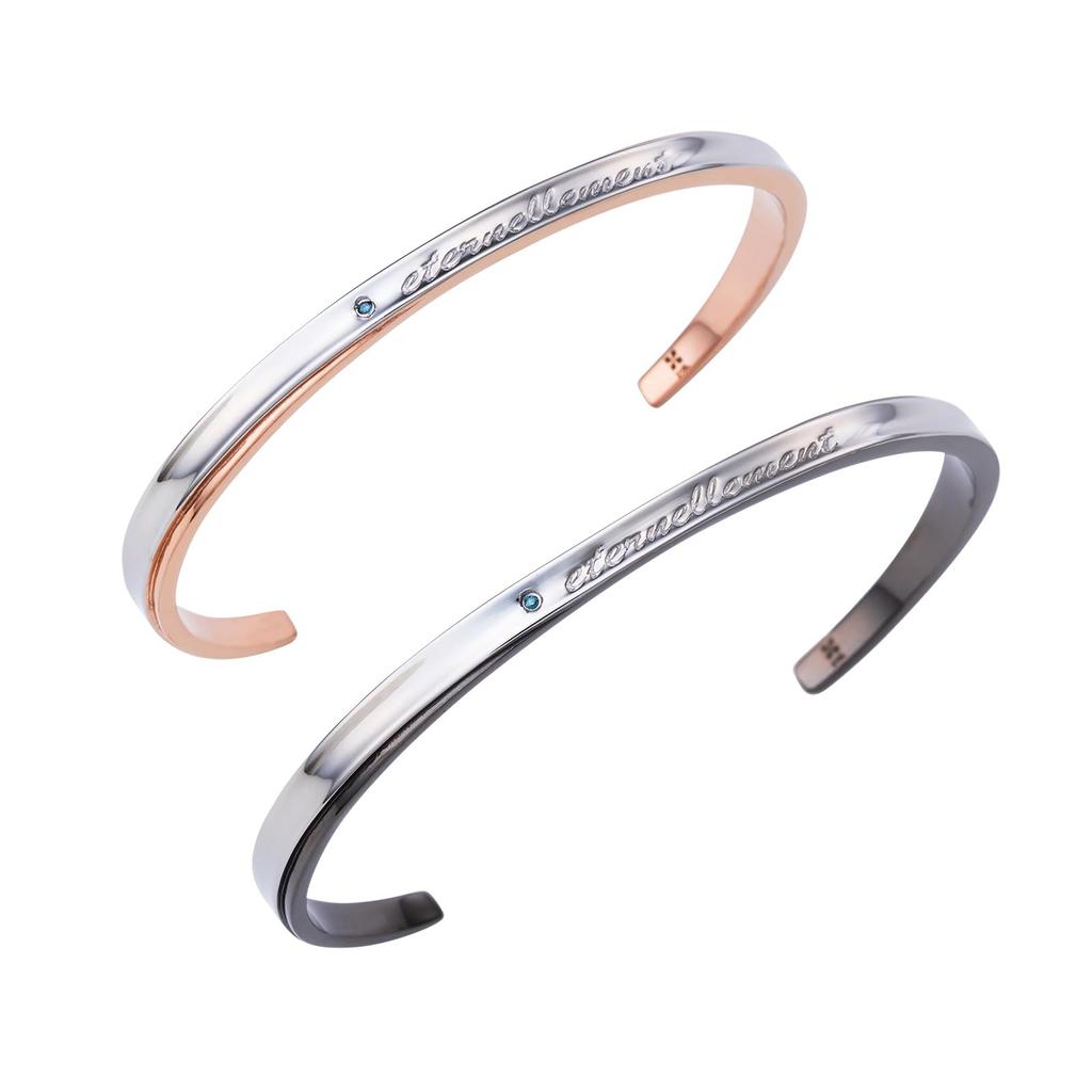 Парный браслет-бенгл для пары из хирургической нержавеющей стали с синим бриллиантом [Белый клевер] 4SBG029GO&4SBG030BK