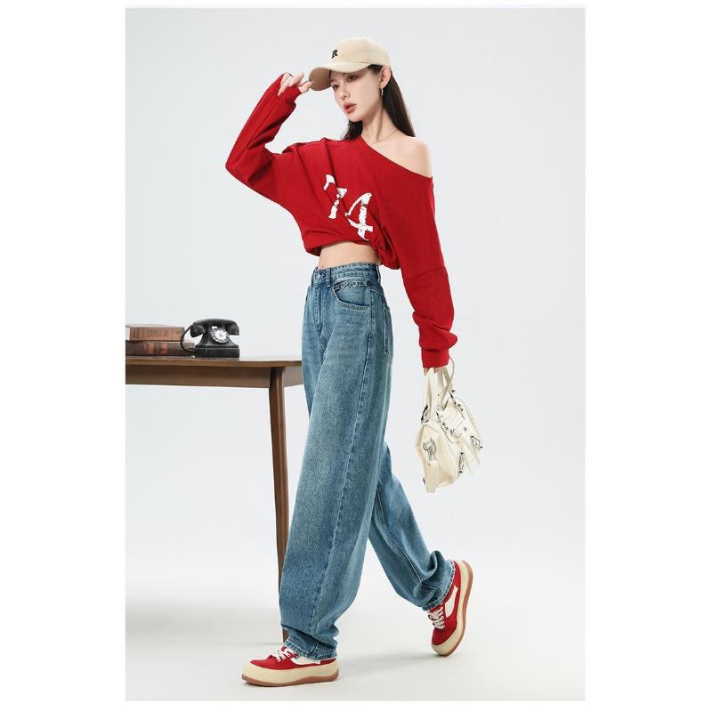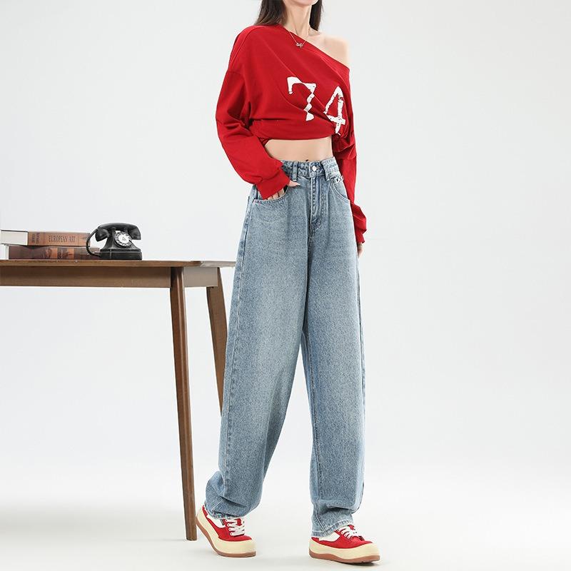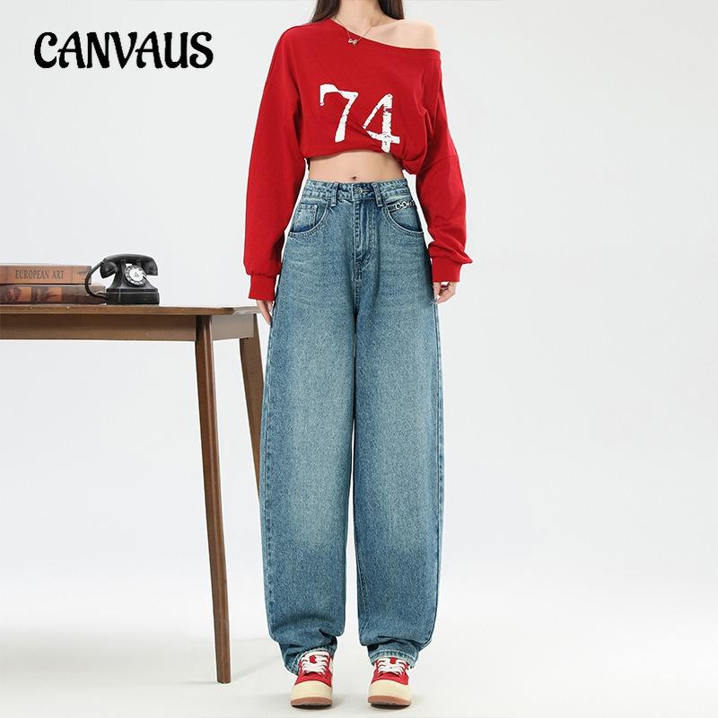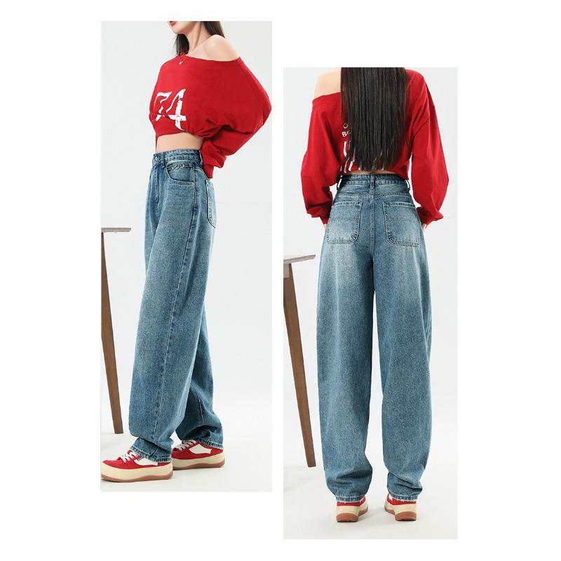 Женские весенние новые повседневные брюки-клеш с высокой талией и широкими штанинами в стиле ретро из денима