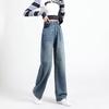 Женские новые ретро драпированные тонкие простые модные джинсовые брюки прямого покроя