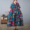 Летнее свободное платье большого размера в китайском стиле с V-образным вырезом, контрастное хлопковое льняное платье с короткими рукавами, утягивающее, средней длины, для женщин, платья