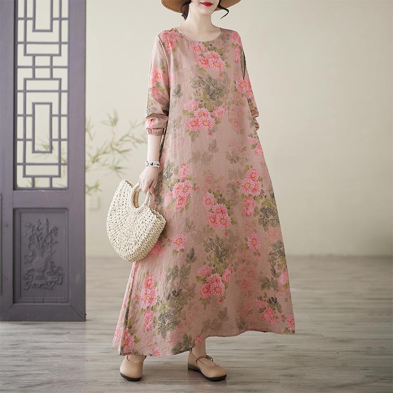 Весеннее литературное платье больших размеров с принтом, круглым вырезом, длинными рукавами, повседневное платье для женщин, вечерние платья