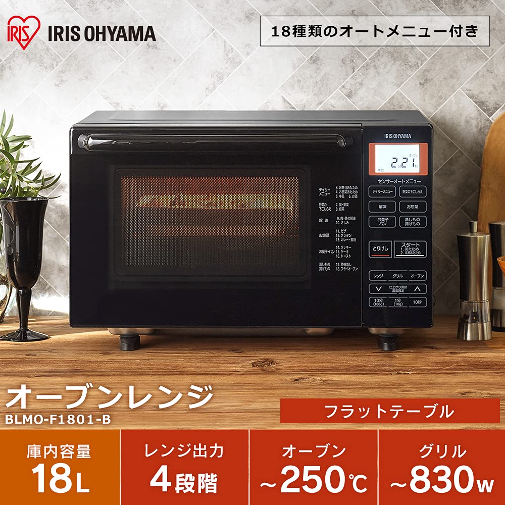 Микроволновая печь Iris Ohyama 18 л, плоский стол, автоматическое меню Hertz Free, 18 типов, черная BLMO-F1801-B