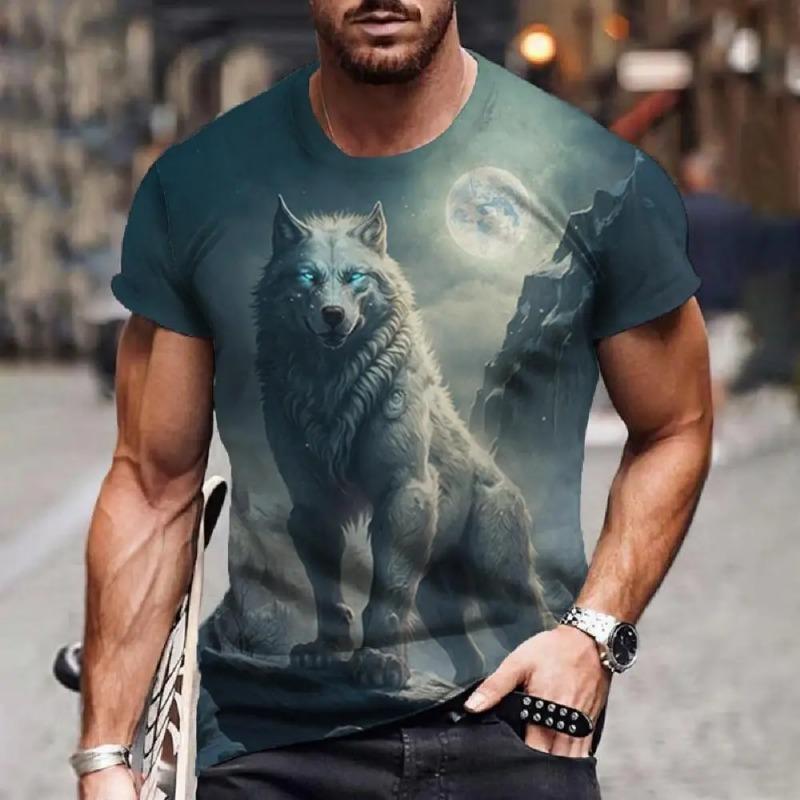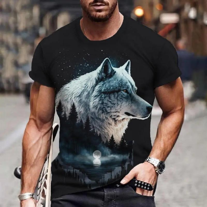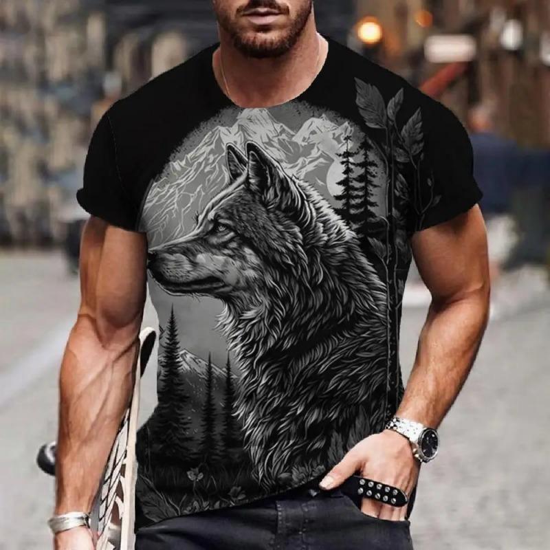 Футболка с изображением волка для мужчин, короткий рукав, анималистичный принт, 3D, повседневная уличная мужская футболка, свободная футболка для мужчин, винтажная одежда, футболки для мужчин