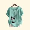 Женская свободная льняная блузка-пуловер, женская повседневная футболка с круглым вырезом и принтом кота, летняя модная футболка с коротким рукавом