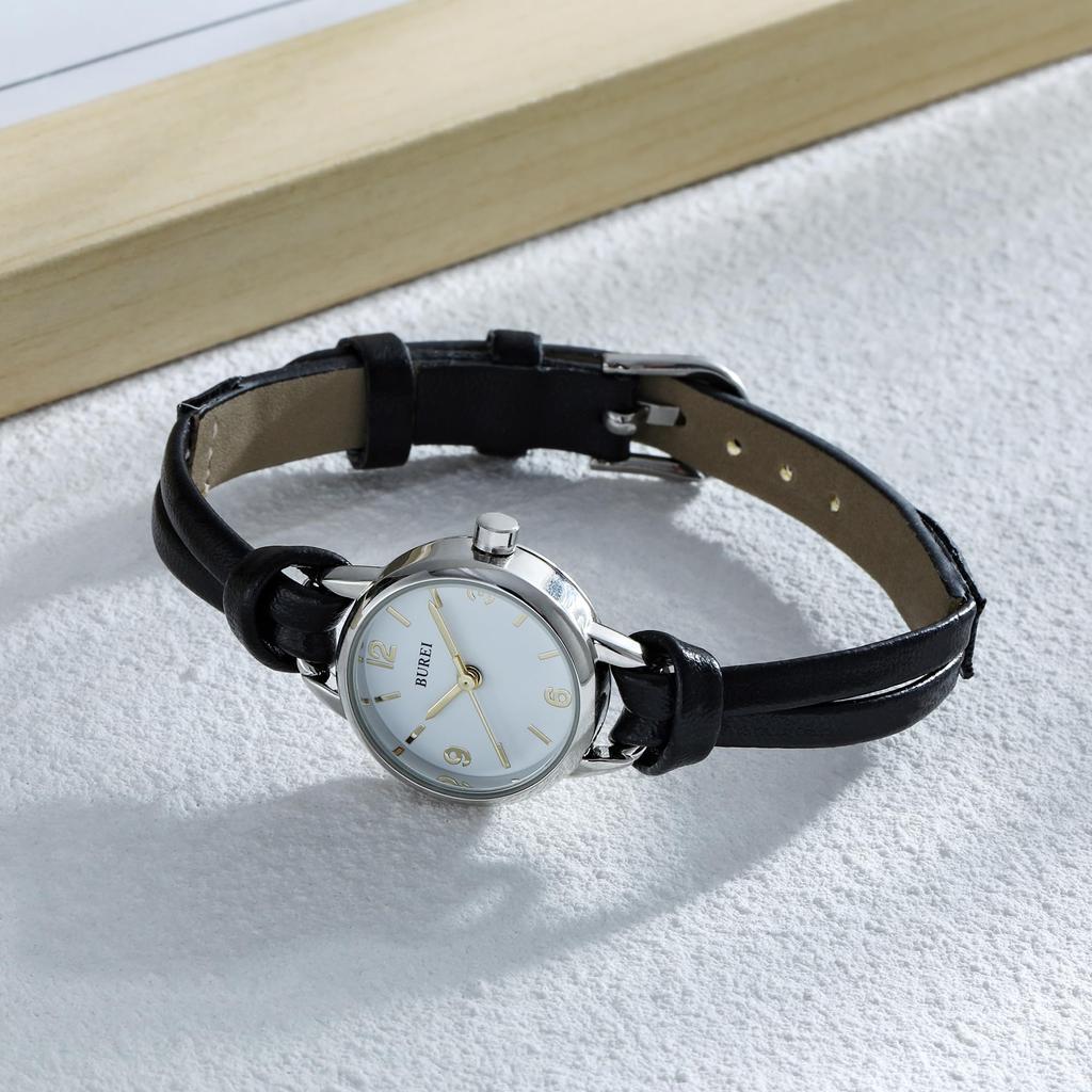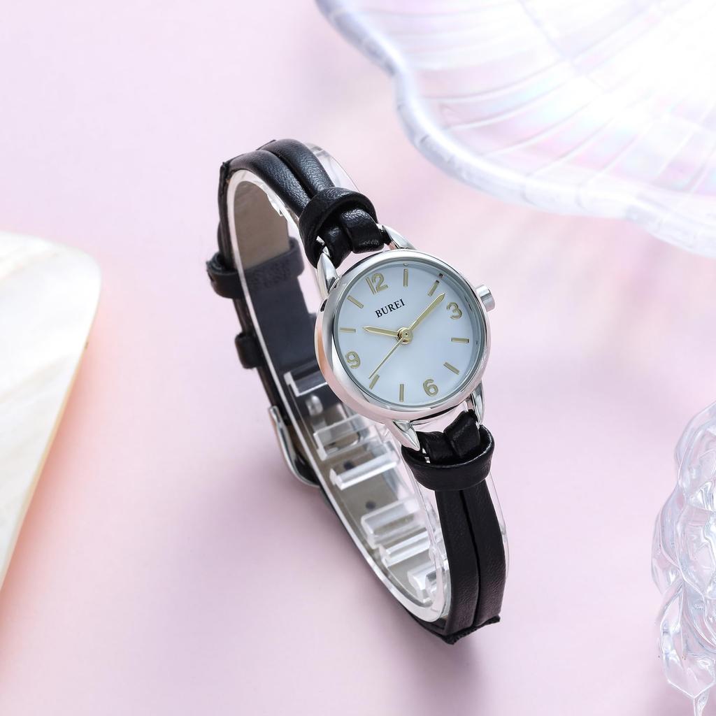 Аналоговые кожаные маленькие японские серебряные подарочные часы [Baosho] женские часы, водонепроницаемые, простые, поясные, женские часы, кварцевые, белые, женские часы,