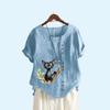 Женская свободная льняная блузка, женская модная летняя повседневная футболка с круглым воротником и принтом кота — купить товар онлайн с бесплатной доставкой по всему миру!